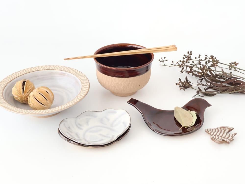 うちる企画展『どうぶつのうつわ展』に出展されている作品の一覧ページです。 クマ、鳥、パンダ…それぞれ個性のある表情に、思わずニッコリ。 作家さんや全国の窯元さんから、心和む動物モチーフのうつわや箸置きが届きました。