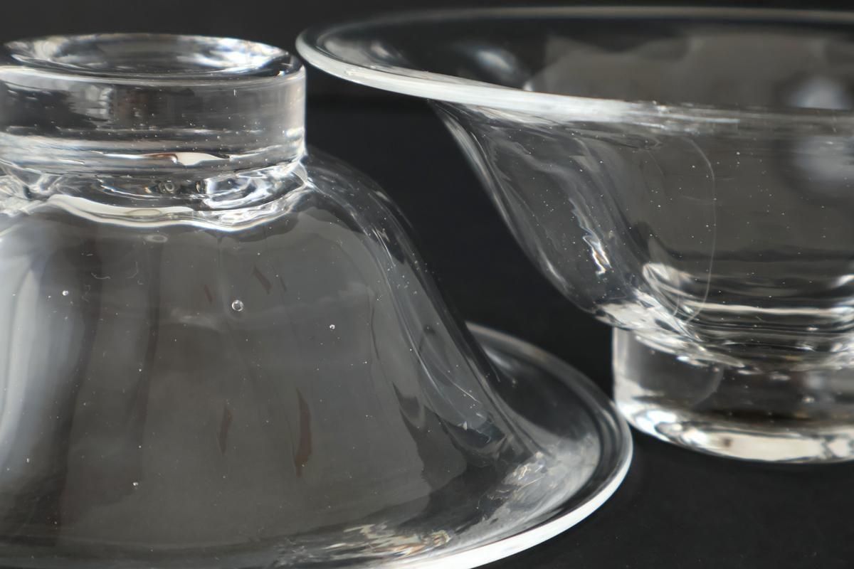 吹きガラスのうつわは、フォルムや気泡の現れかたが違ったりと、それぞれ異なった味のある表情。
