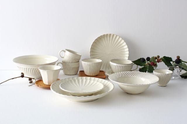 鎬や面取りといった、丁寧な手仕事の美しさが光る粉引のうつわは、ながく大切に使いたくなる魅力があります。