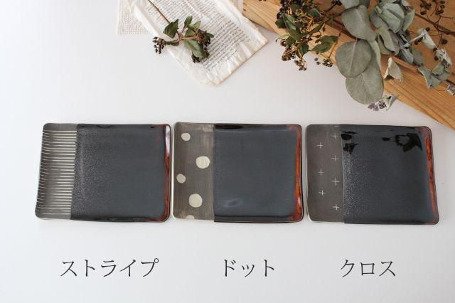 つやつや飴色と、マットな質感にストライプの柄が入った、ツートンのプレートです。