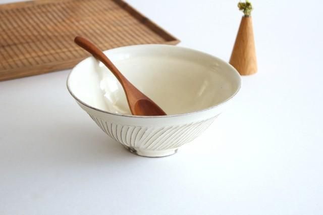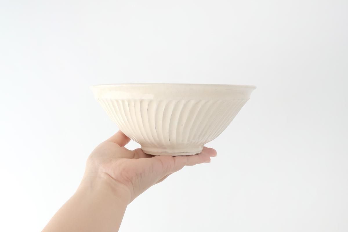 うつわの外側にすっと入った、鎬の彫りが美しい鉢です。
