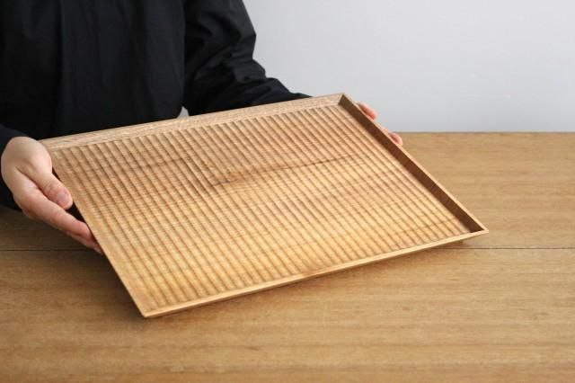 彫りがあるおかげで、上に載せたうつわがズレにくく、持ち運びやすいのがうれしいところ。