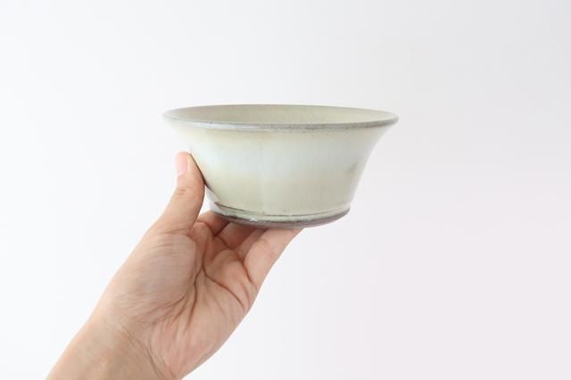 ベージュと白が混じりあっているような、柔らかい色合いの反り鉢です。