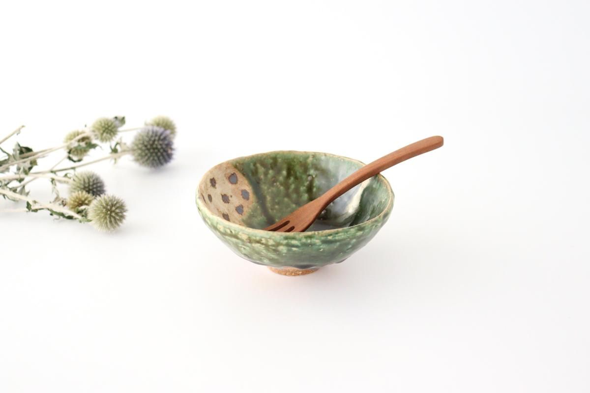 織部釉の色合いが美しい、温もりを感じる飯碗です。