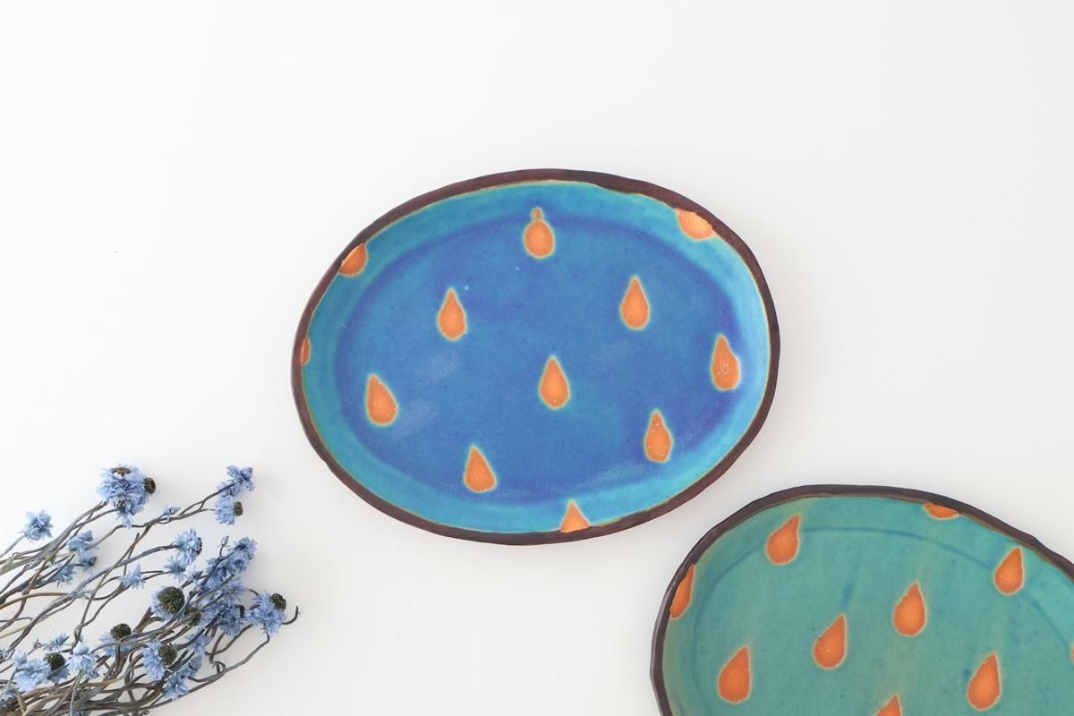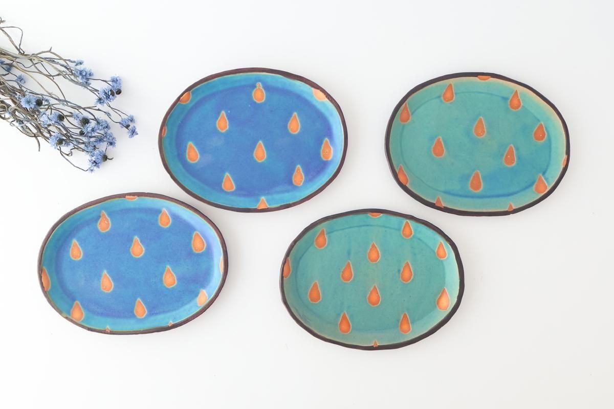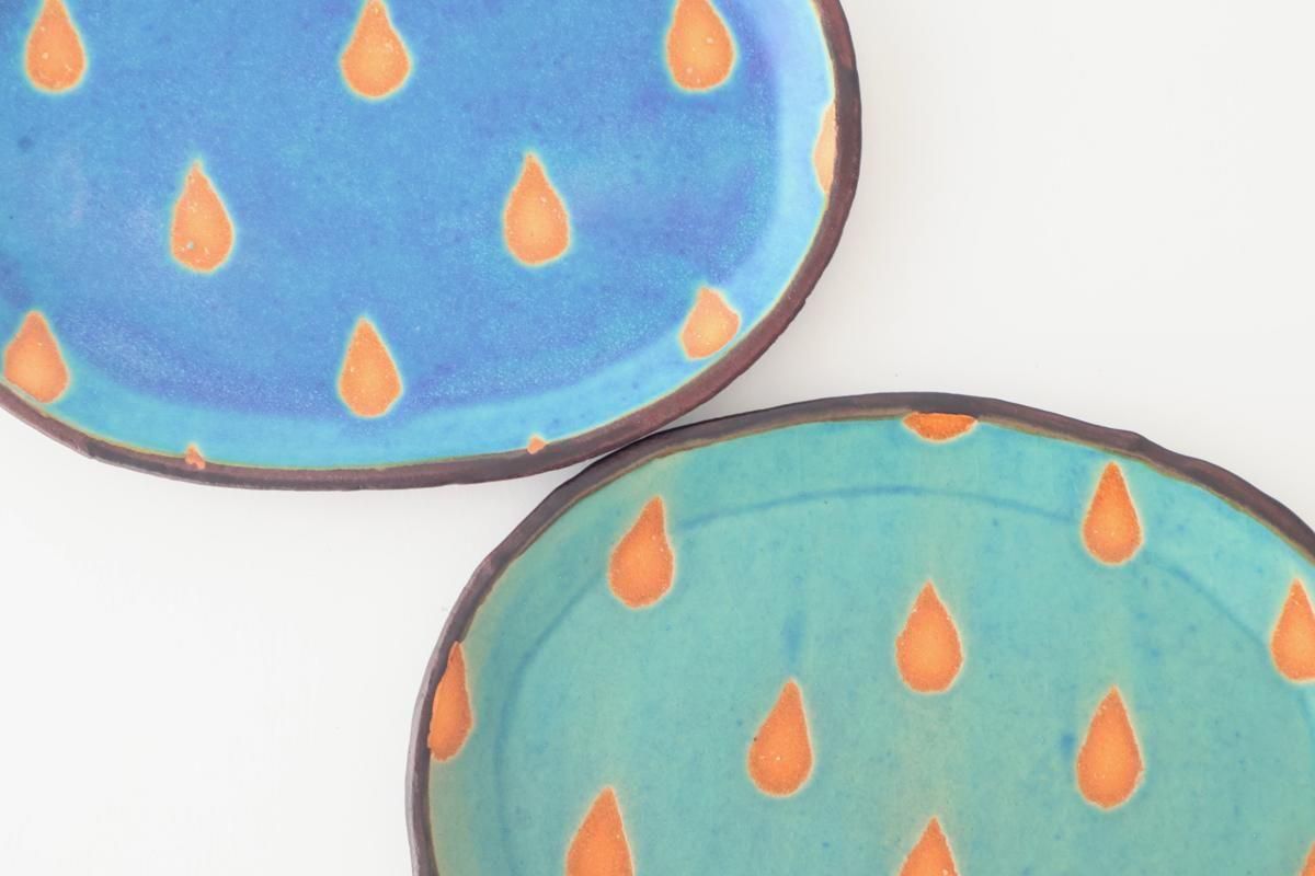 鮮やかな青地にしずく模様が描かれ、まるで沖縄の雨の日のよう。