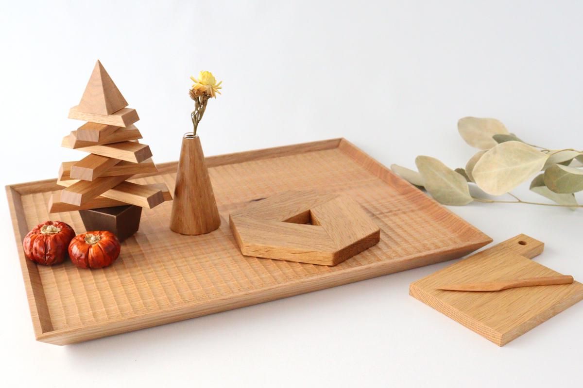 加賀さんのメッセージにあるとおり、ひとつずつ手づくりされたモノでありながらきりっと気持ちよさのある、整った佇まいの木の作品たち。