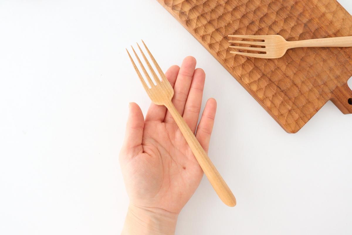 軽やかな持ち心地の、樺(かば)のフォークです。