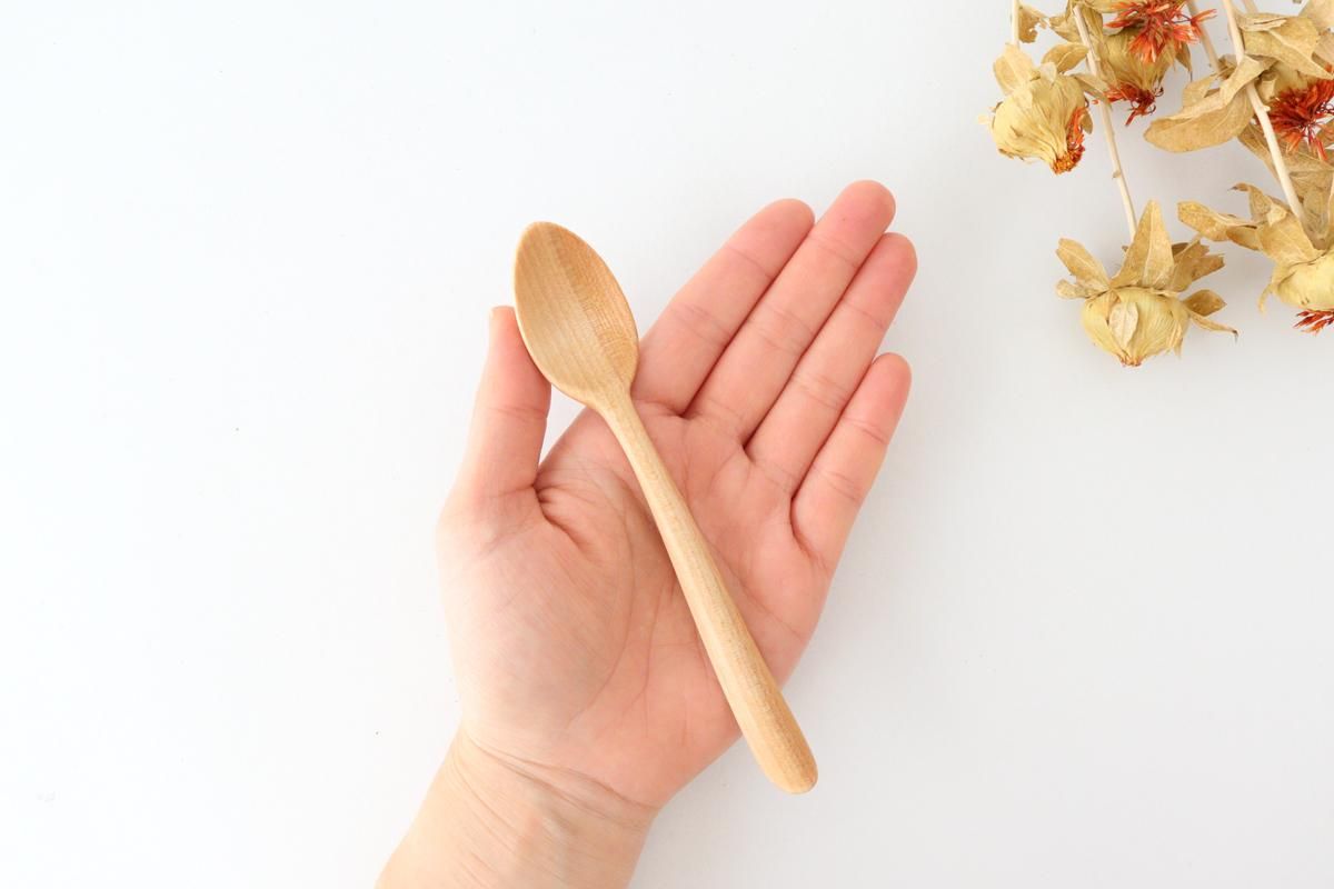 軽やかな持ち心地の、樺(かば)のデザートスプーンです。