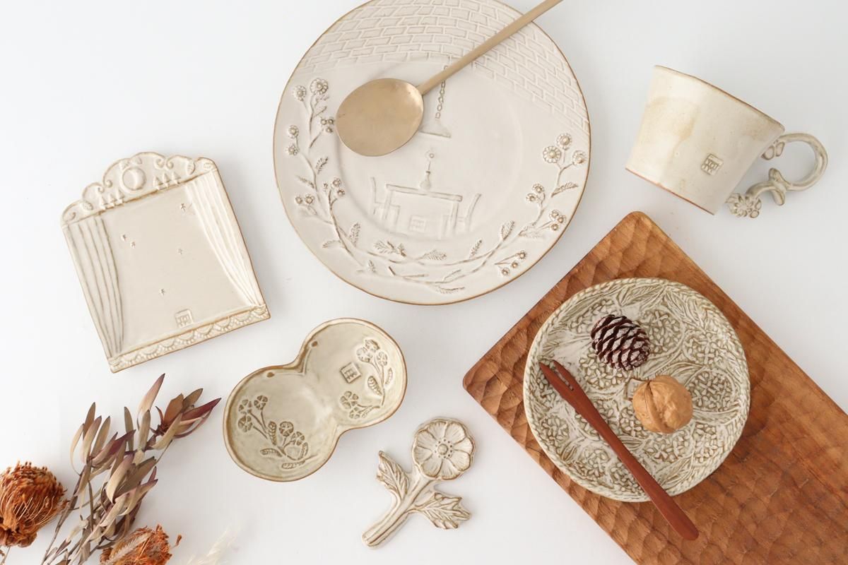 花や動物、自然をモチーフに作られた、オブジェのような佇まいで北欧デザインを思わせるアートなうつわたち。