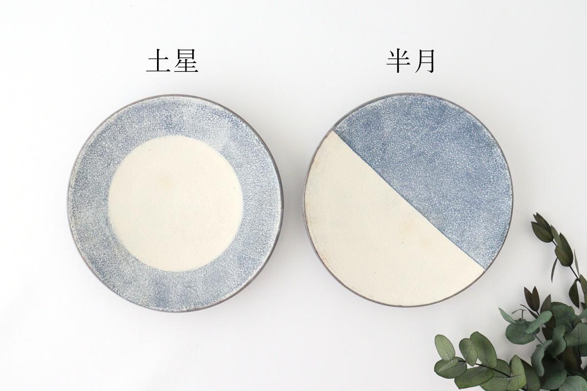 デニムのような青と、粉引の柔らかな白で表現された半月が印象的。