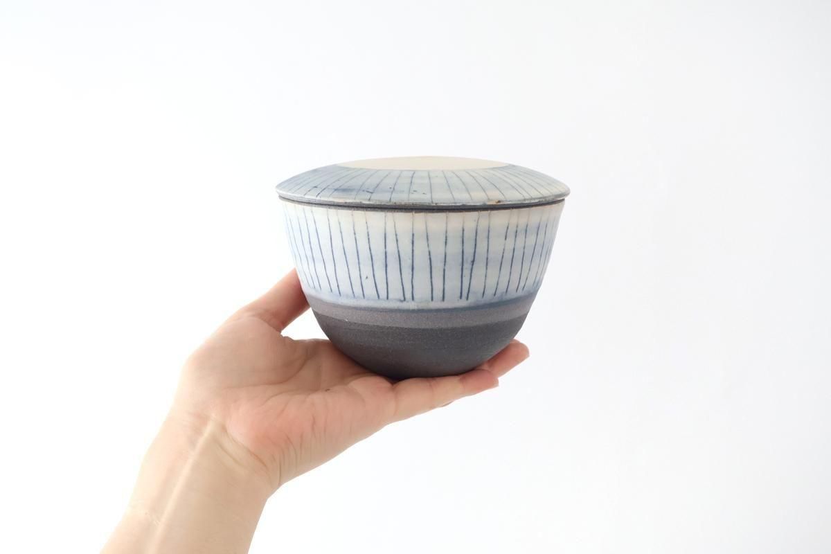 ストライプ柄がスタイリッシュな、1合用のおひつです。