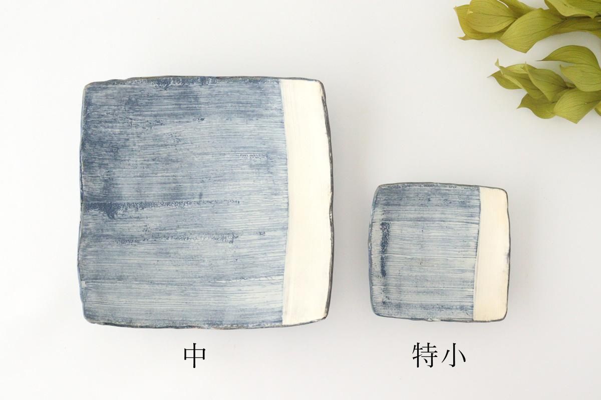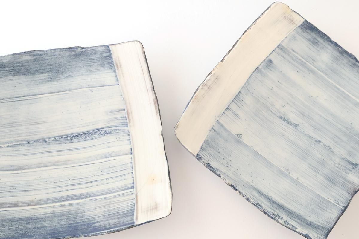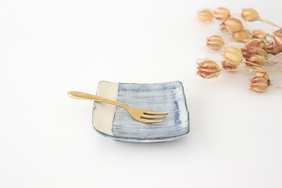 インディゴと粉引のコントラストが楽しい、角皿です。