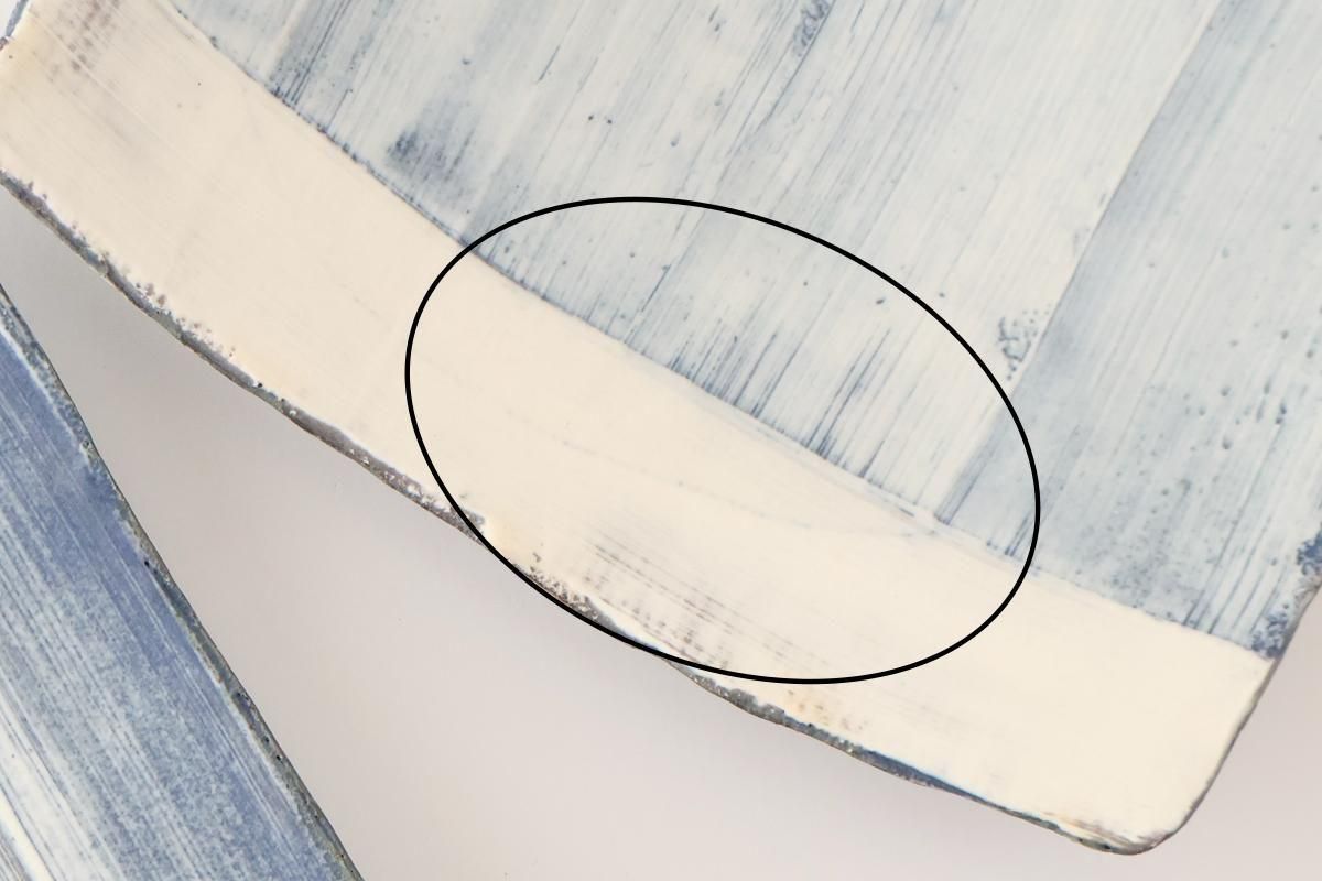色落ちしたデニムような独特の色合いは、釉薬を重ねて剥がすことで表現されています。