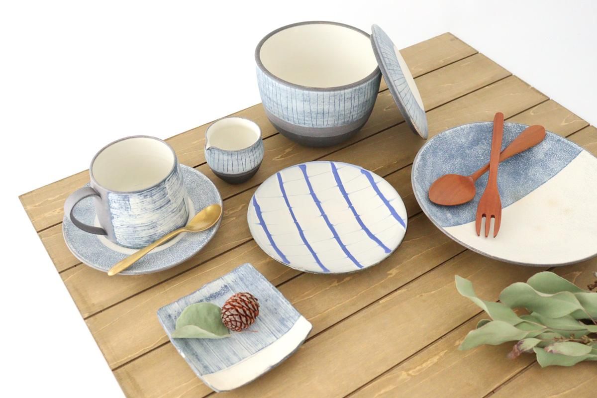 デニムのような青と、粉引の柔らかな白で表現されたツートンが、スタイリッシュな印象。