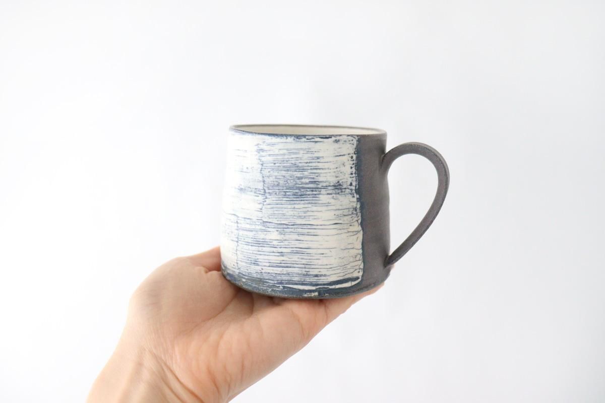 インディゴのハケ目が印象的な、マグカップです。