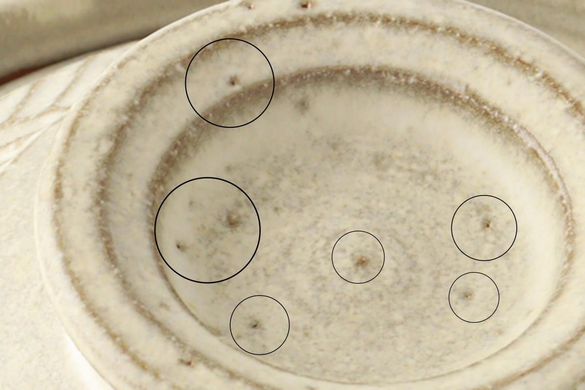 釉薬は、手作業でひとつひとつ丁寧にかけられているため、釉薬のかかり方が均一でない場合があります。
