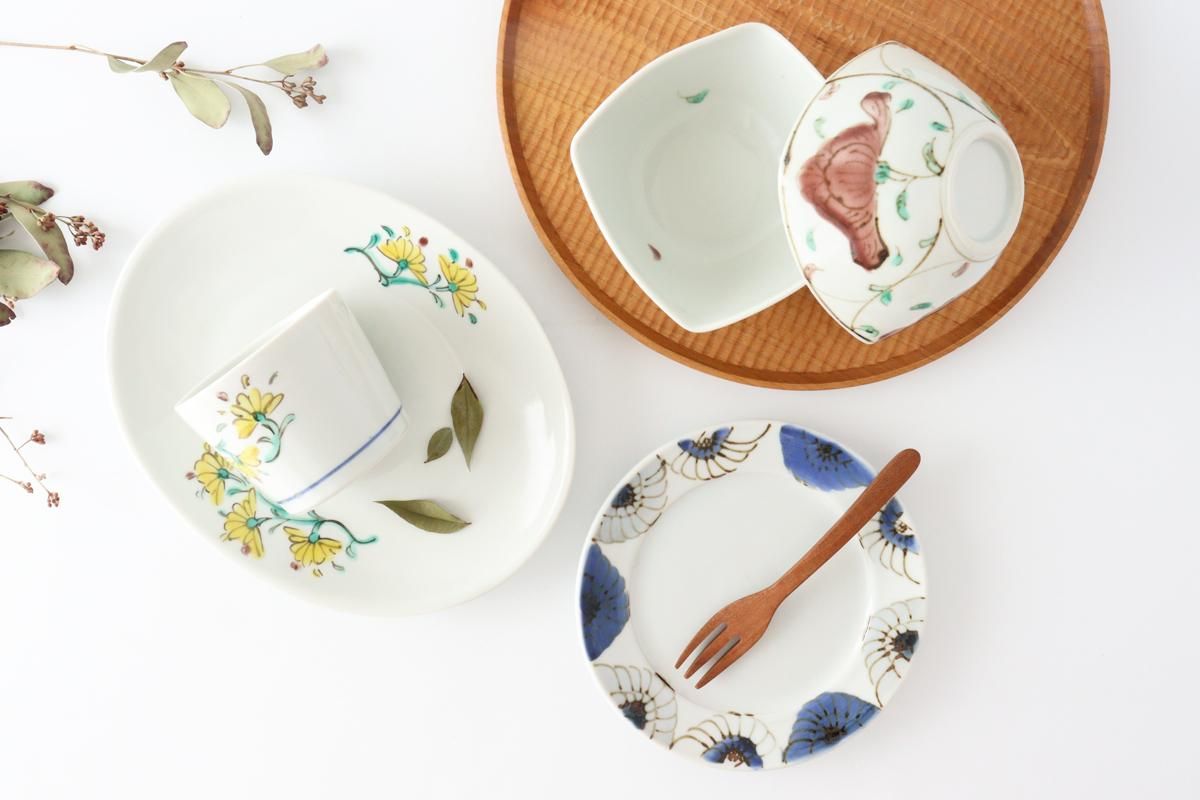 商品特性/ 取扱注意点 | ・使用している九谷の土は鉄分が多く稀に大きな鉄粉が入っておりますが、使用上に問題はございません。 ・手づくりのため、ひとつひとつ色合い、形、大きさ、厚みなどが少し異なり、個体差があります。 ・ピンホール等が見受けられたり、柄の入り方、色味が違ったりする場合があります。 ・ひとつひとつ違った表情をみせる、手作りならではのあたたかみのある風合いを楽しみたい方におすすめです。 ・経年変化は特にございません。 ・作家・窯元によって、価格の見直し・改定が行われる場合がございます。 |