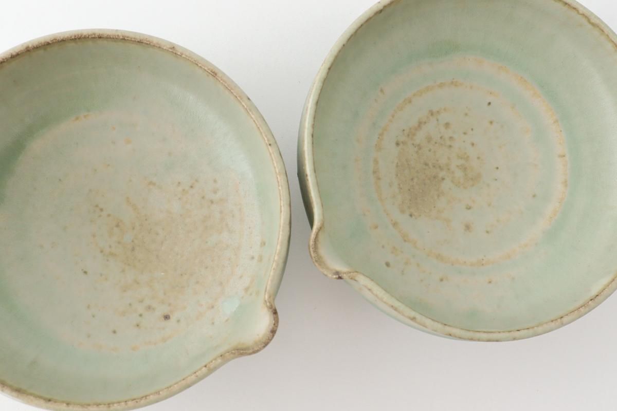 | 作家さんのおすすめメンテナンス | ・貫入が入っていますので、少しずつ色がはいっていきます。(織部は殆ど分からないくらい目立ちませんが、灰釉は徐々に変化します。) ・変化するのが陶器の良さでもあると思っているので、何もしなくていいと思いますが、貫入に色が入るのをなるべく防ぎたい場合には、米のとぎ汁で煮てもらう作業をすすめています。 ・使う前に軽く水を含ませるなど していただくといいかなと思います。(自分で使う分はせずに使います。)