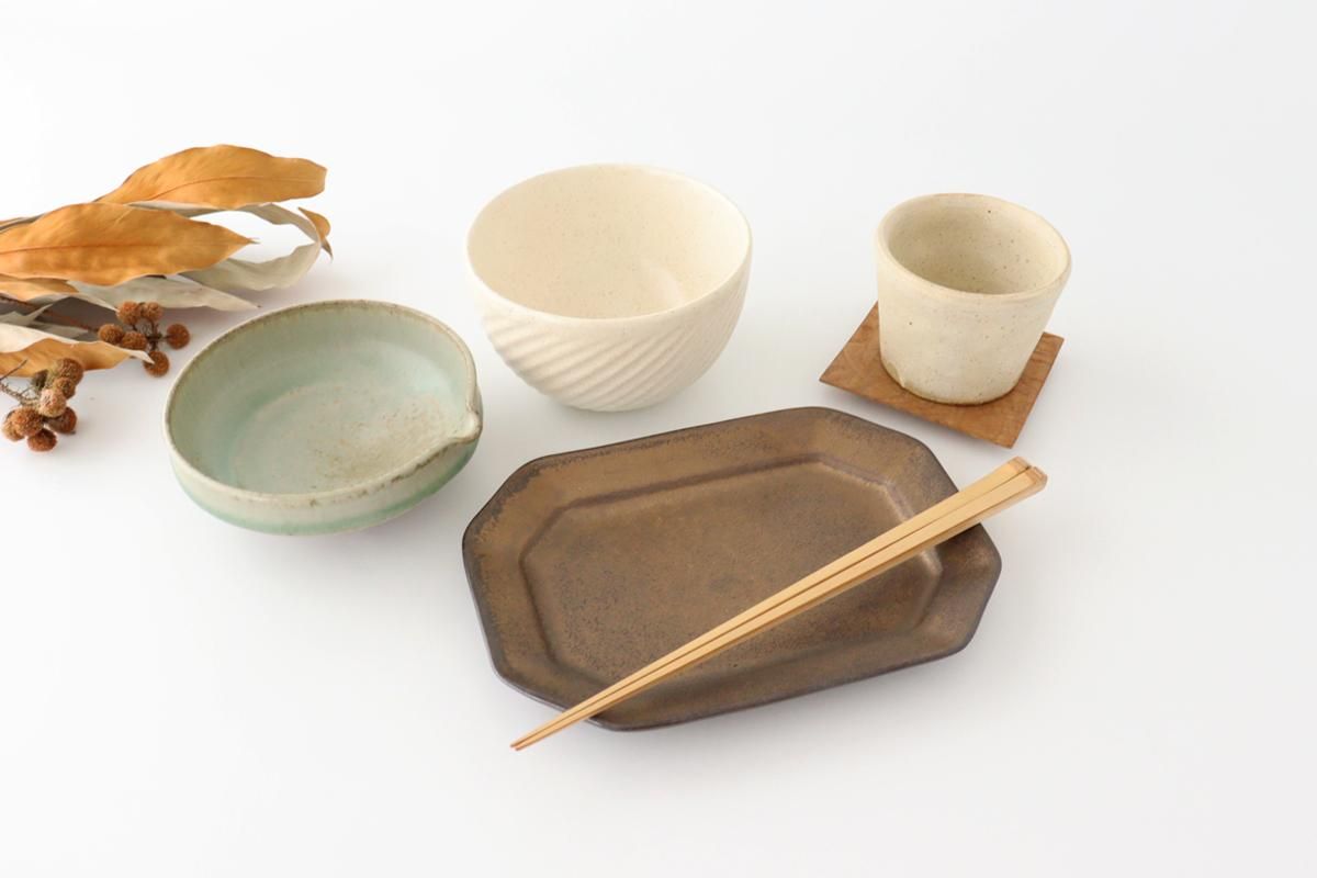 うつわの表情をつくるのは、量産品には見られない、斑点や、かすれ、釉薬のムラや、濃淡、形のたわみなど。