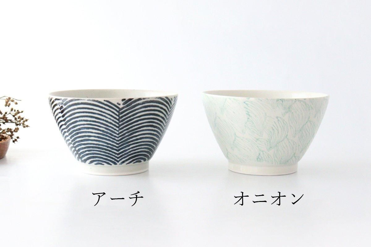 うっすらグレーがかった白磁に、アーチ状の青い線がよく映えます。