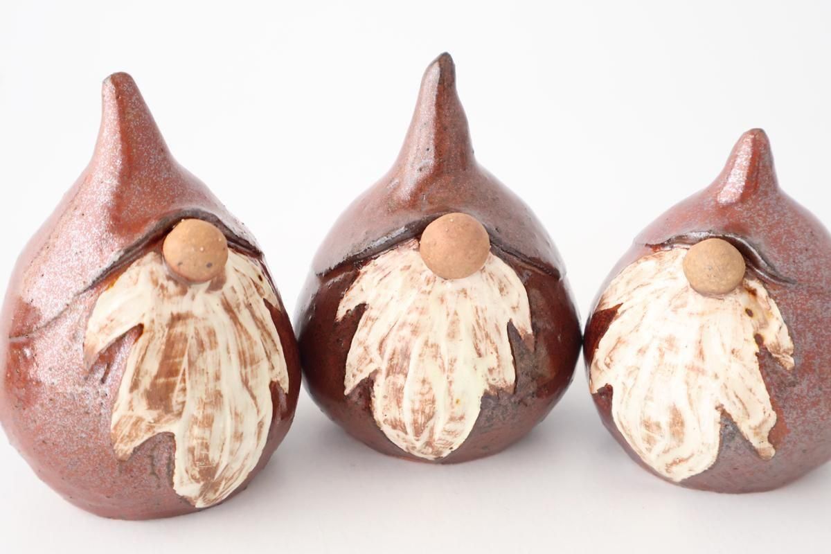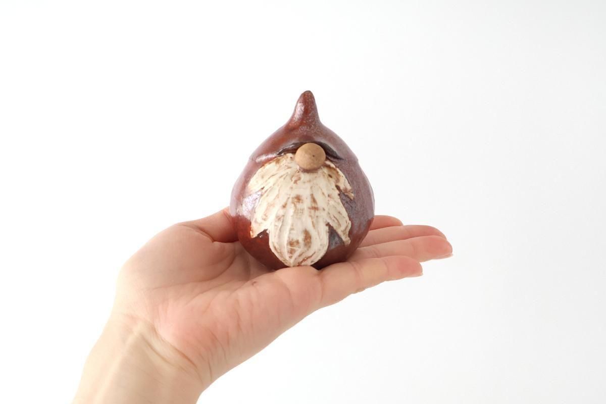 陶器でできた、温かみのある雰囲気のトムテの置物です。