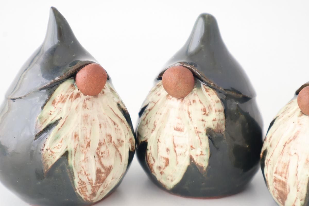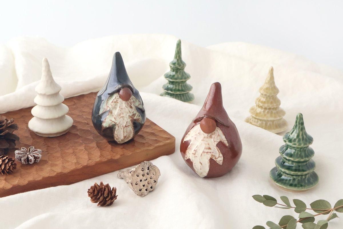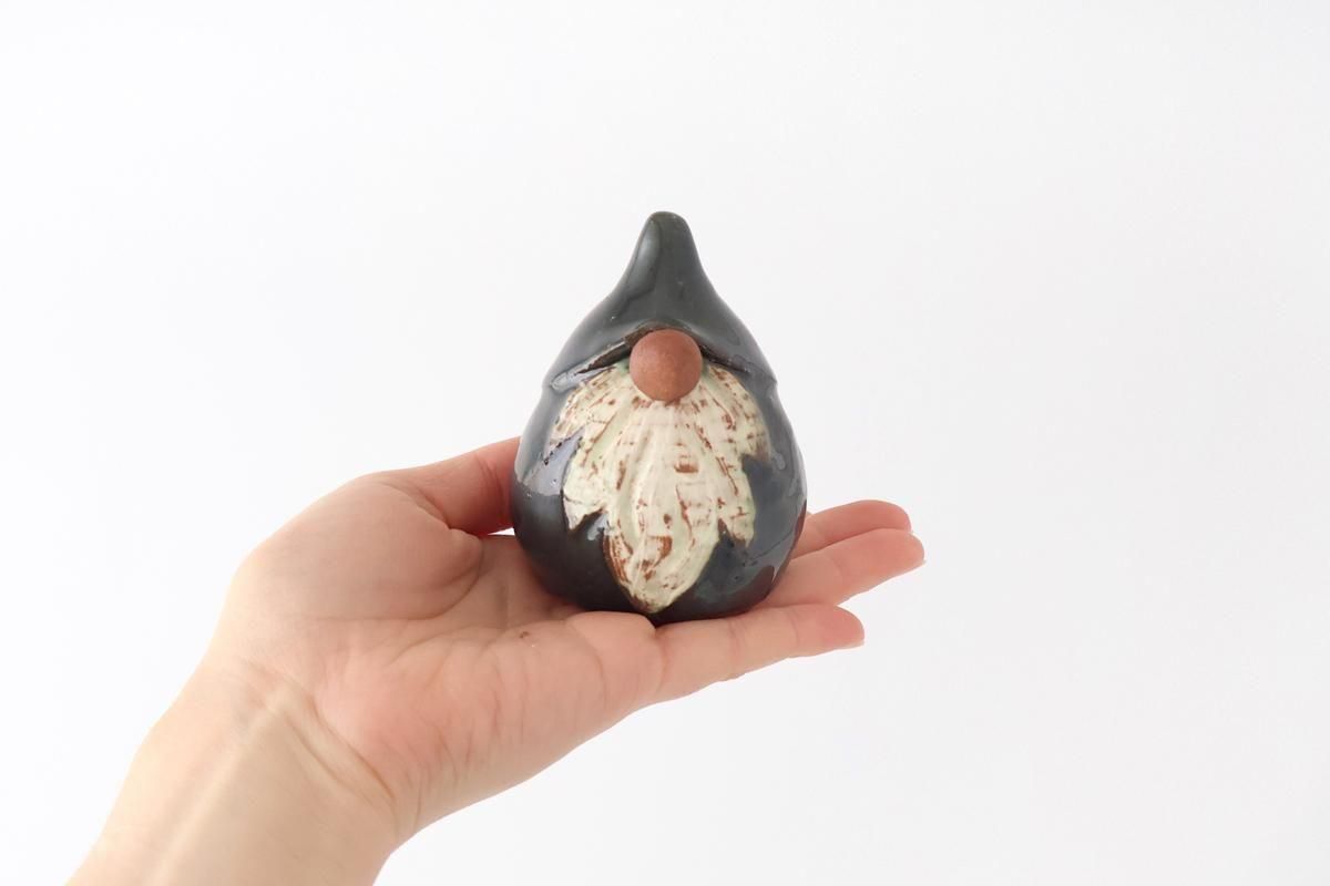 陶器でできた、温かみのある雰囲気のトムテの置物です。