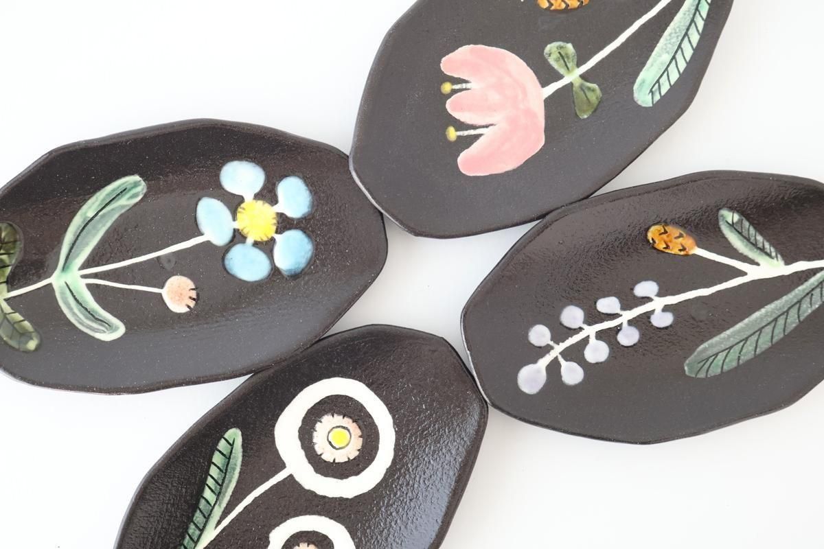 色とりどりのお花が描かれた、小皿です。
