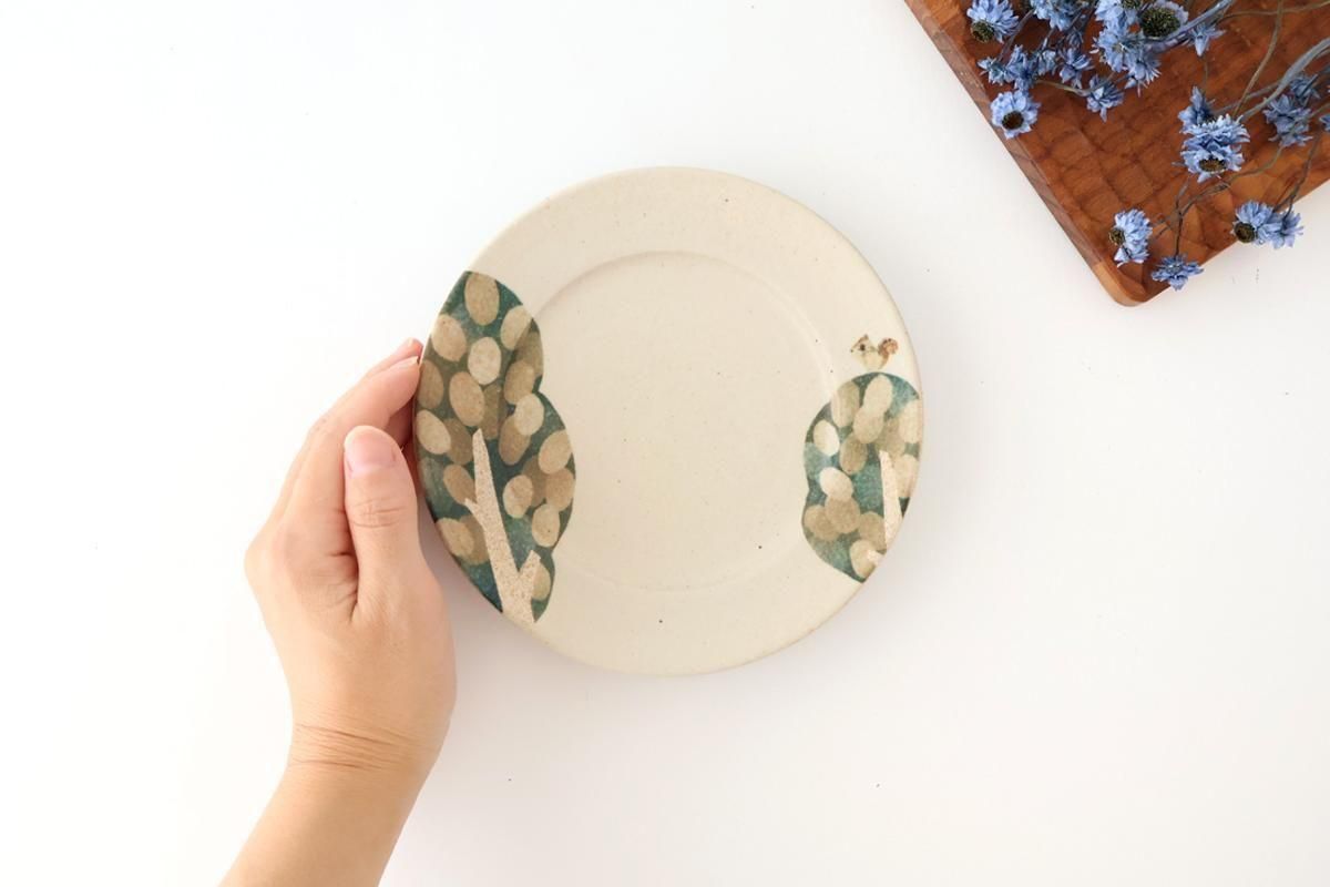 こんもり葉の茂った木が描かれた、かわいらしいプレートです。