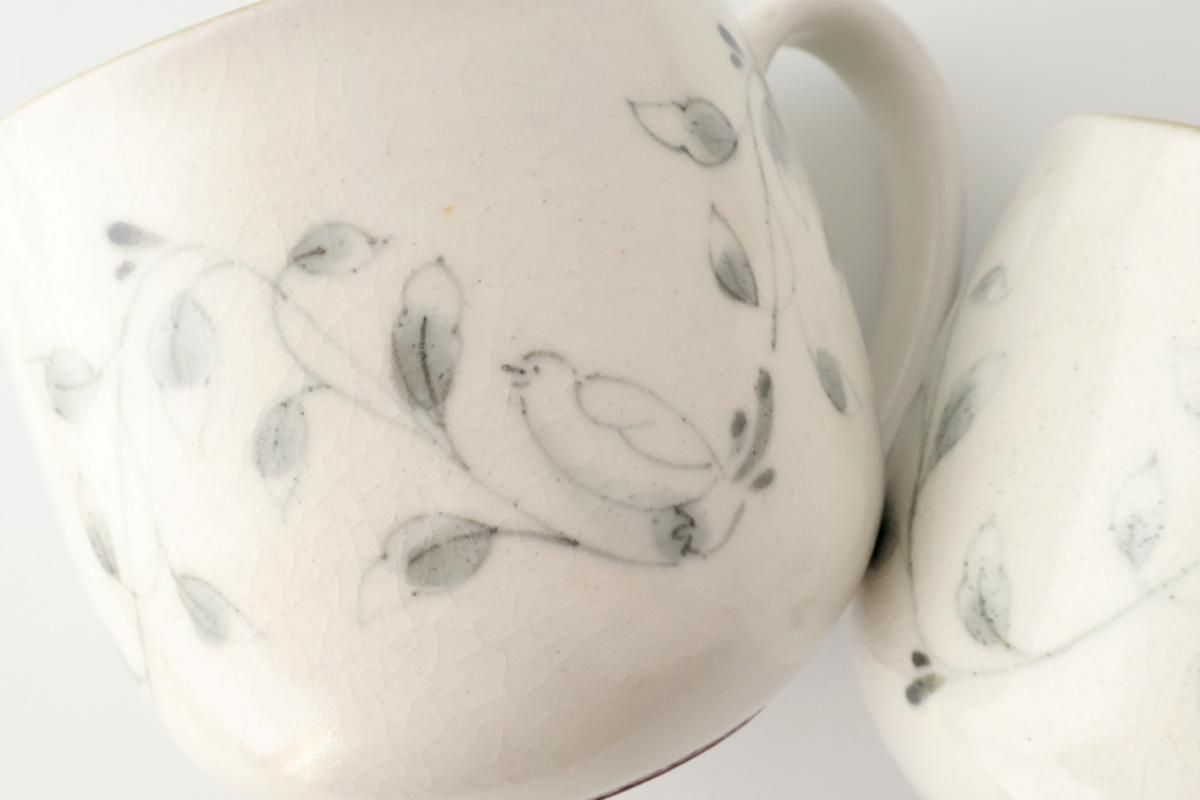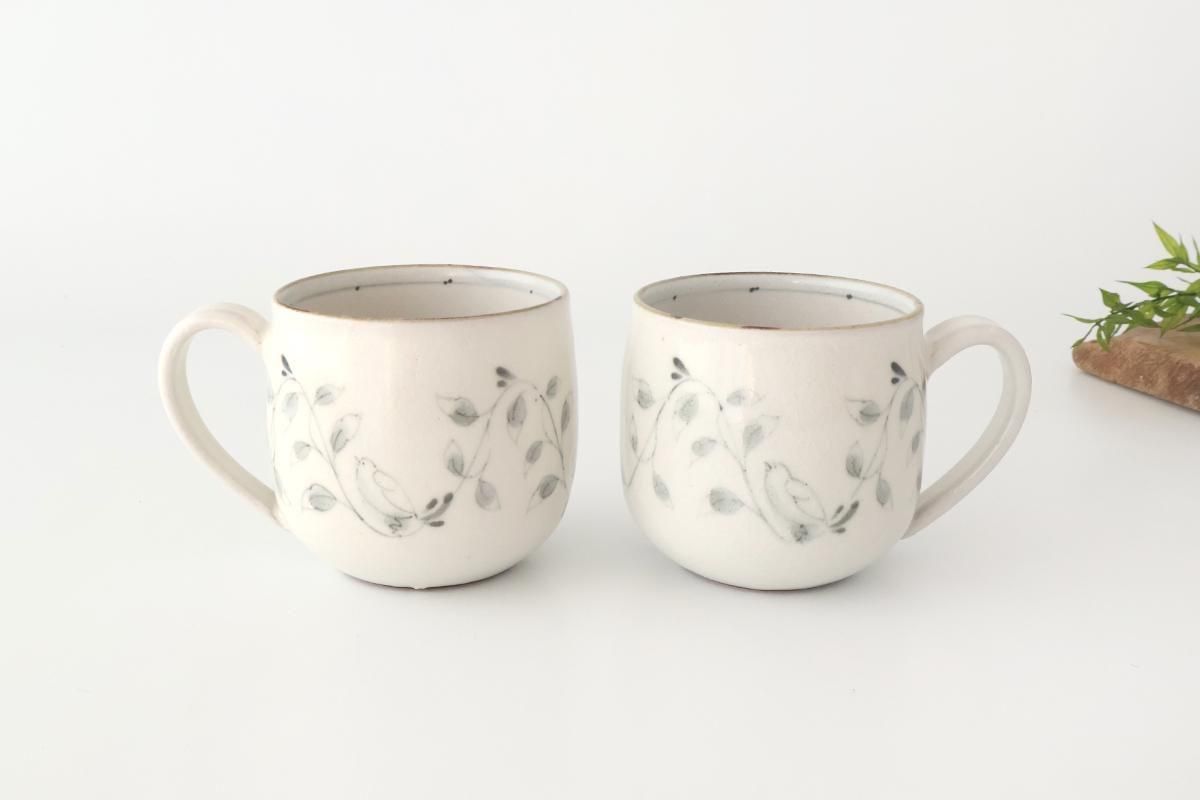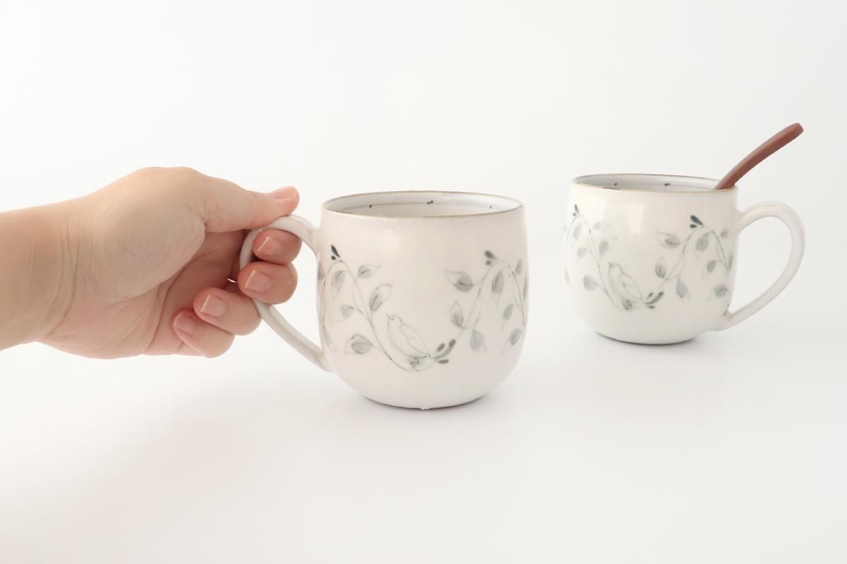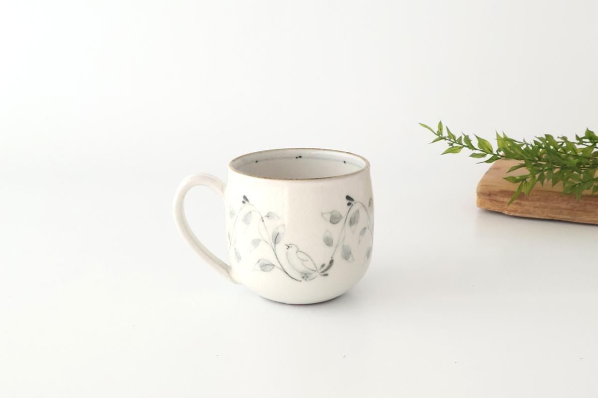 鳥がポイントになった、ふっくらとした形のマグカップです。
