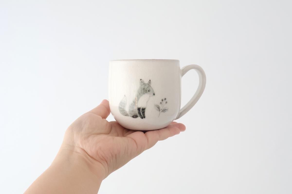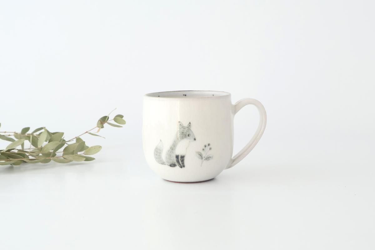 キツネがポイントの、ふっくらとした形のマグカップです。