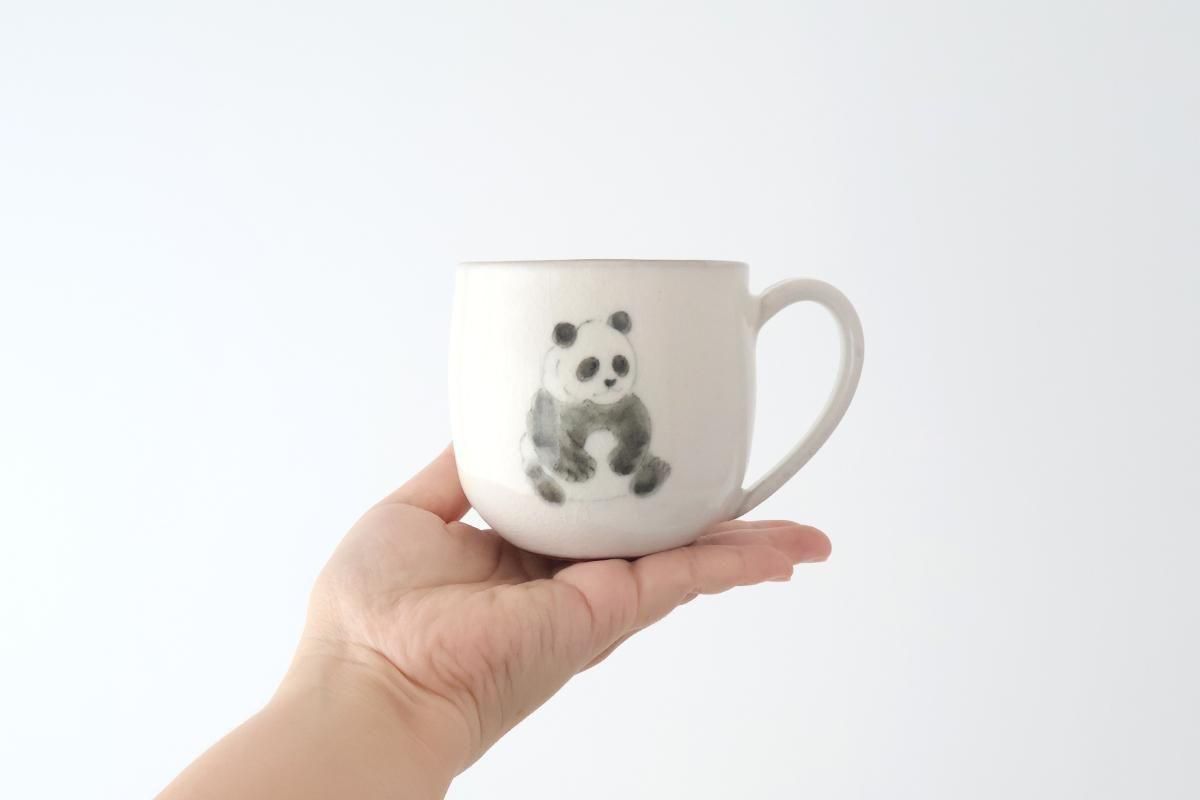 パンダがポイントの、ふっくらとした形のマグカップです。