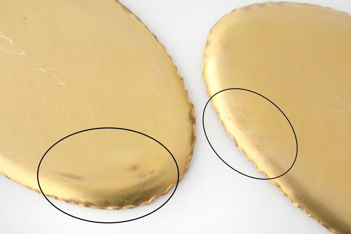 表面に細かい擦れや黒い斑点のようなものがあるものもございますが、真鍮の特徴の一つです。