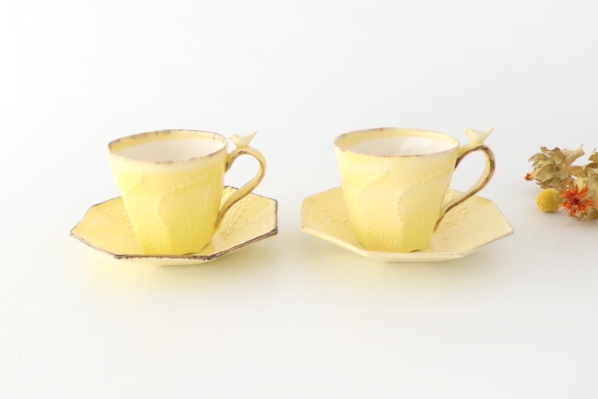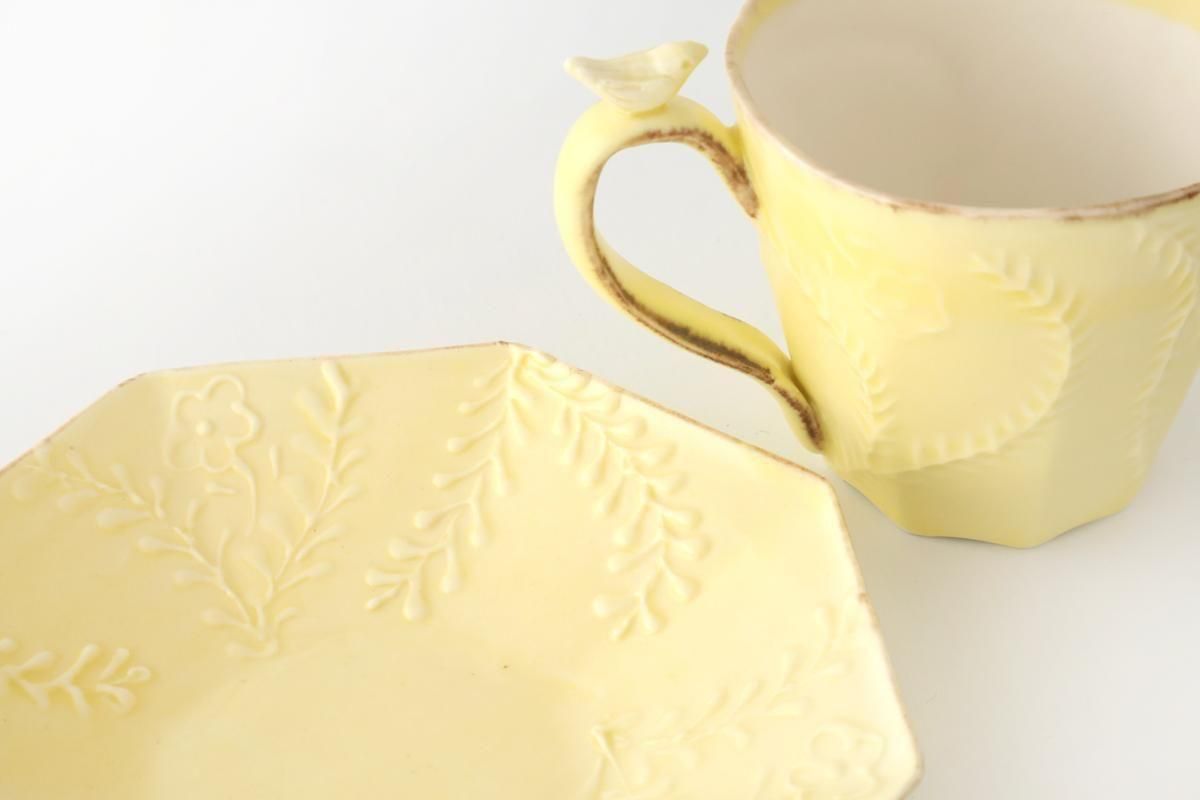 カップの取っ手にちょこんと乗った鳥が愛らしい、カップ&ソーサーです。