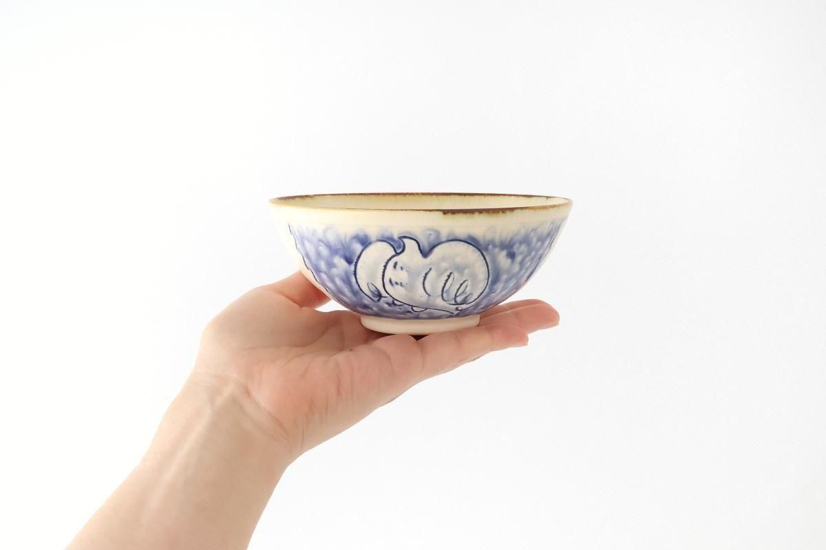 素地に直接線を彫り、そこに呉須などを染み込ませることで、にじみや揺らぎを活かした表情を生み出しています。