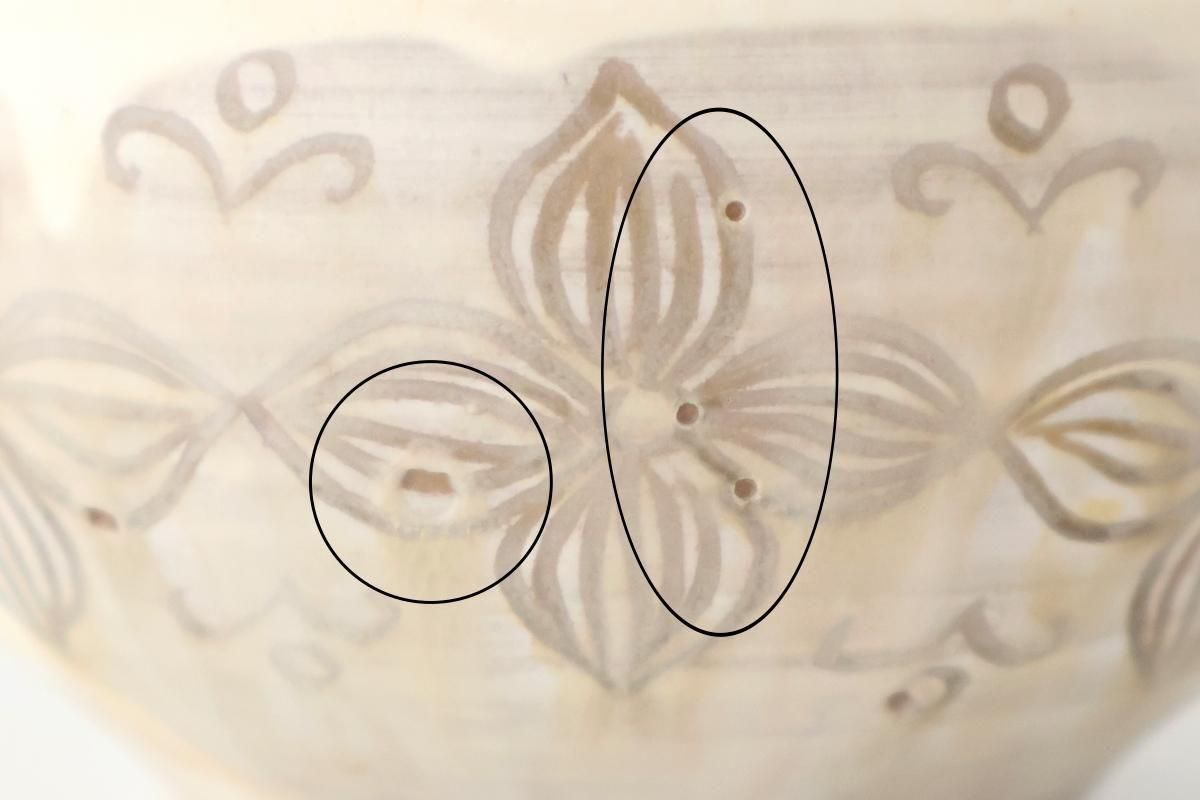 釉薬は手作業でかけられているため、かかり方が均一でない場合があります。