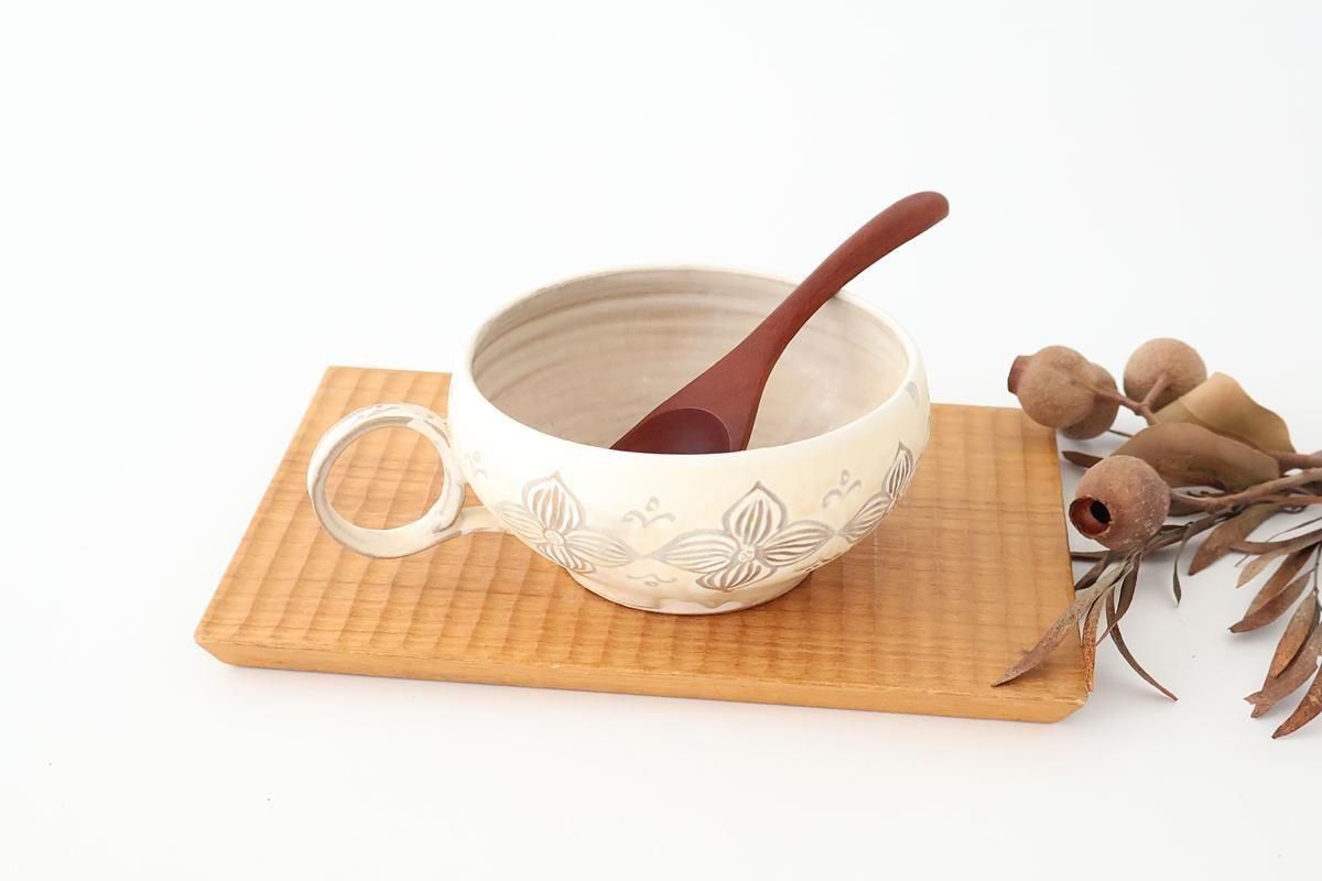 土の風合いを感じる、あたたかみのあるスープカップです。