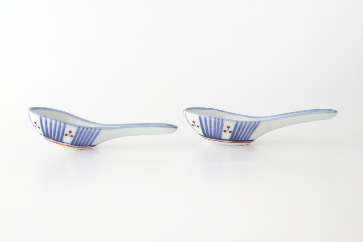 絵付けが素敵な、なめらかな白磁のレンゲです。