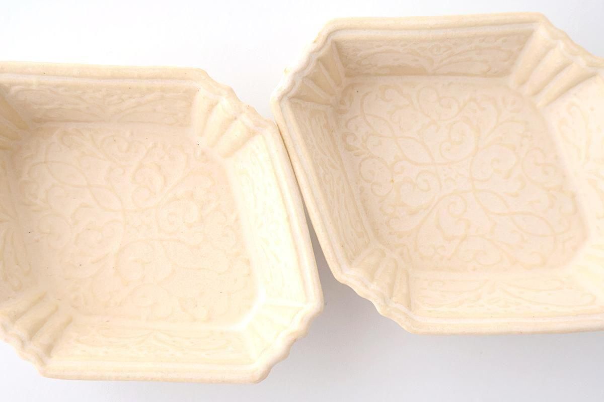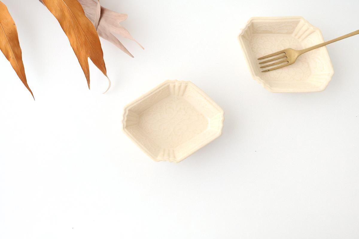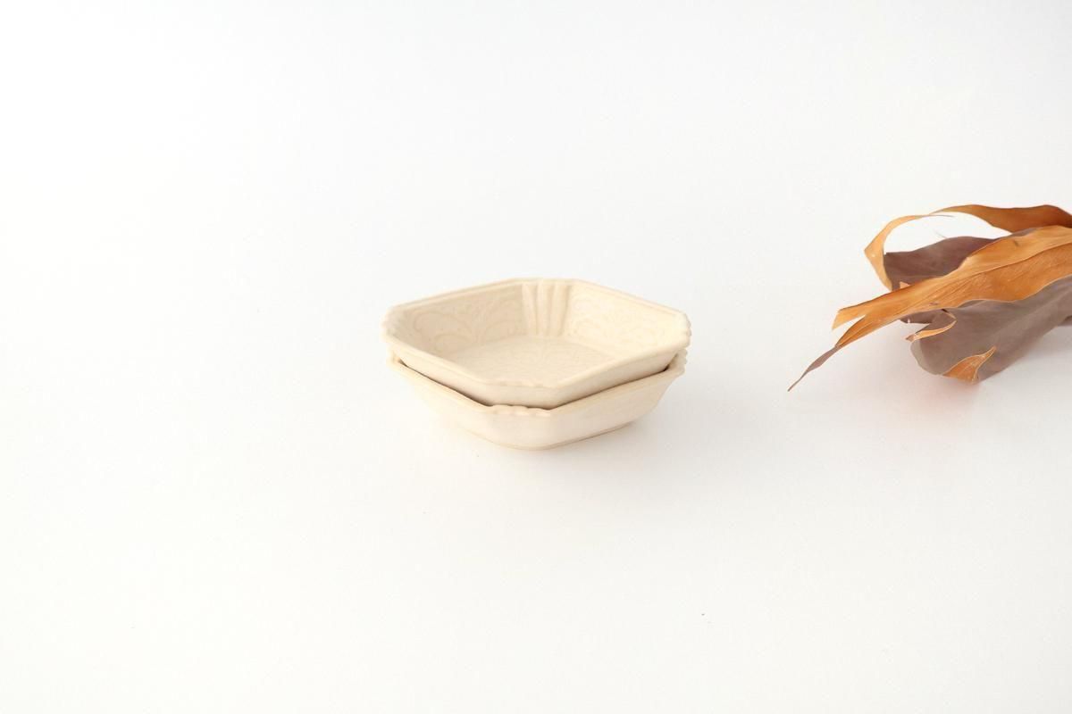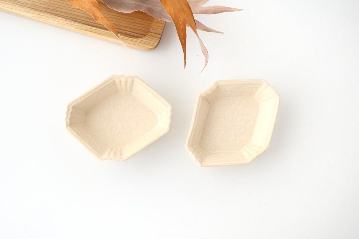 繊細な模様が美しい、菱形の小皿です。