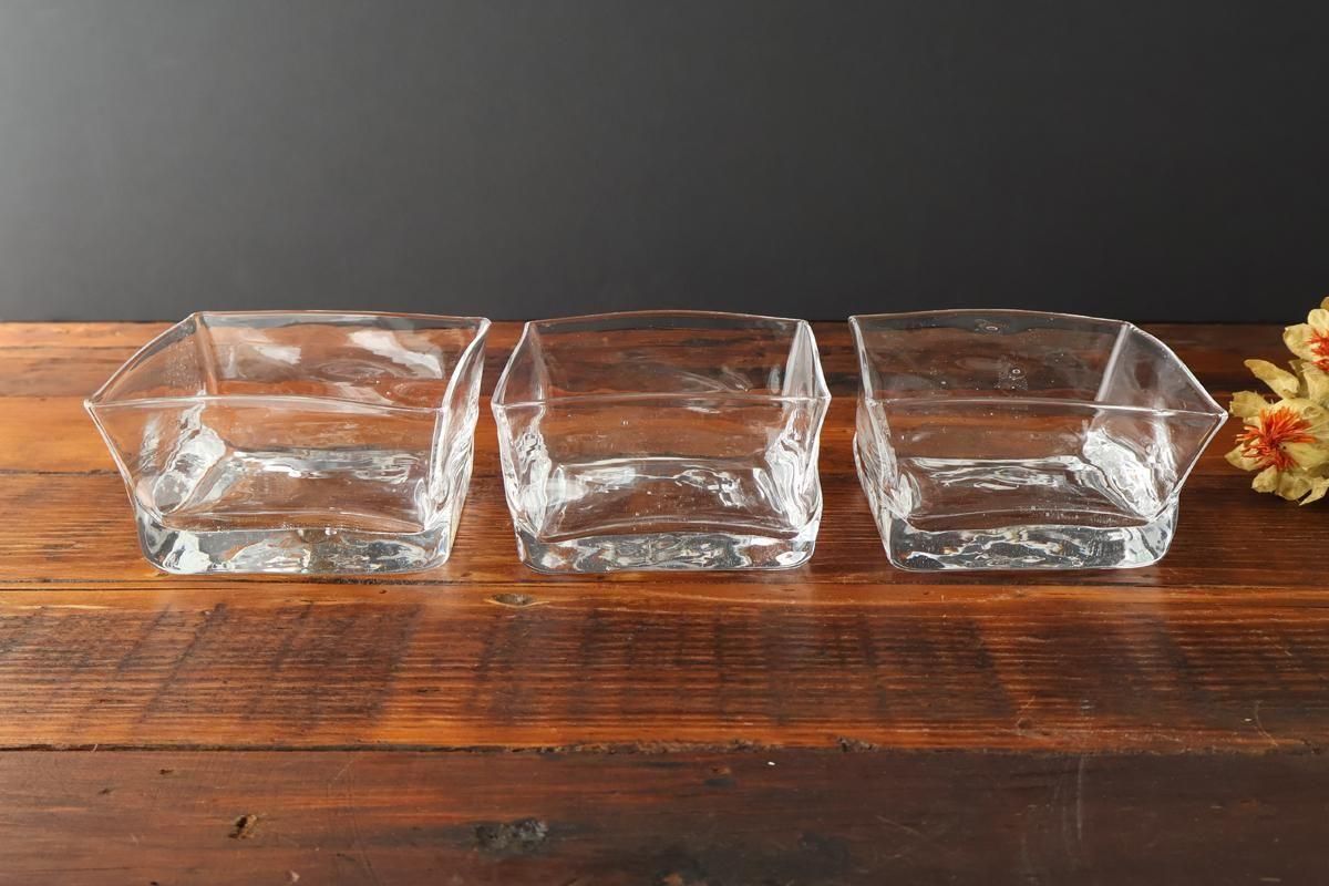 吹きガラスのうつわは、フォルムや気泡の現れかたが違ったりと、それぞれ異なった味のある表情。