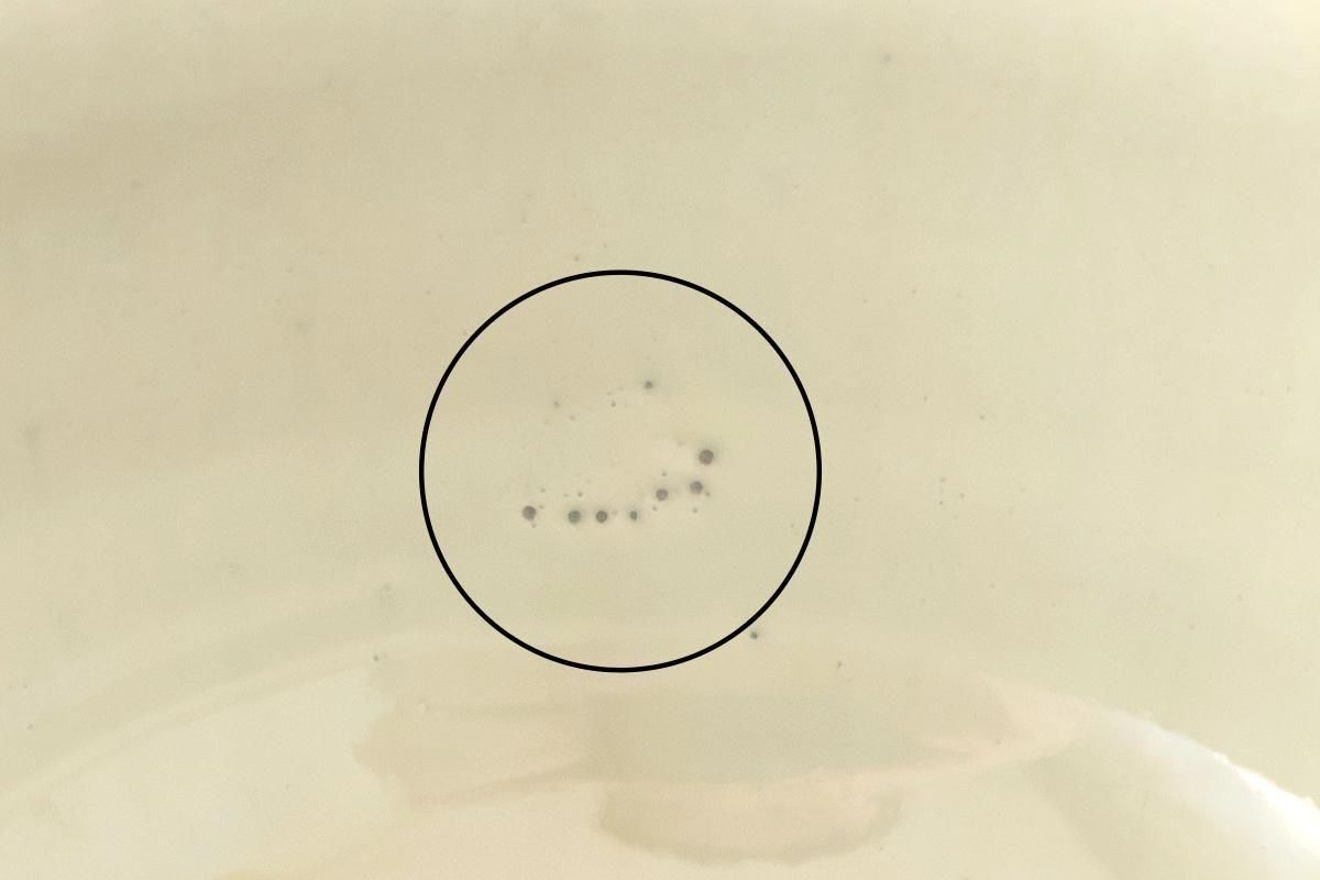 〇写真のような、ピンホールの連なりがみられる場合がございます。
