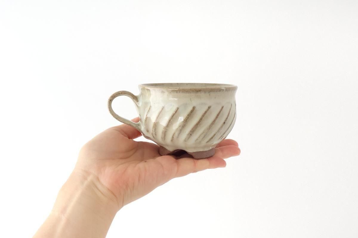 カップの底についた三つ足のような高台が、ユニークな佇まいです。