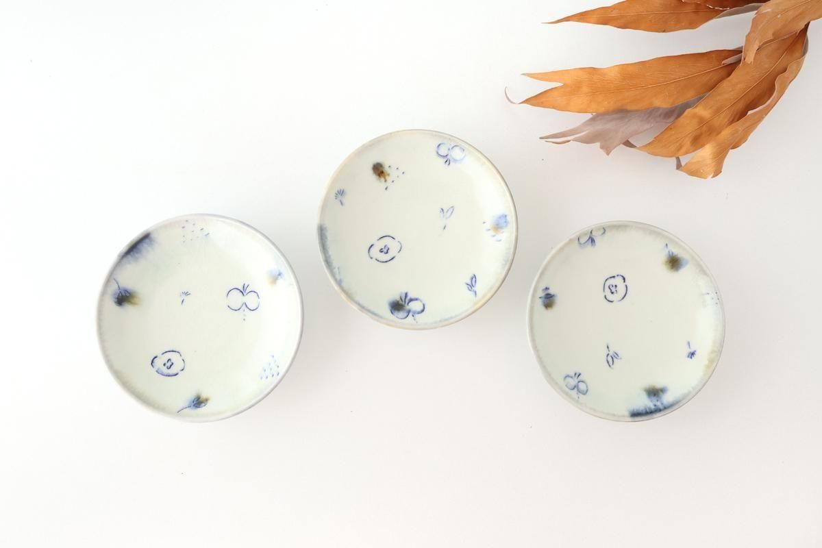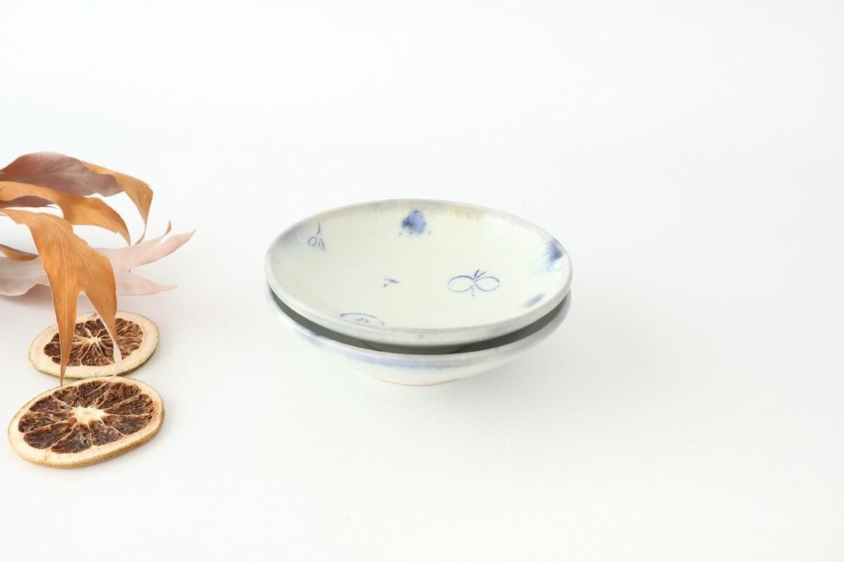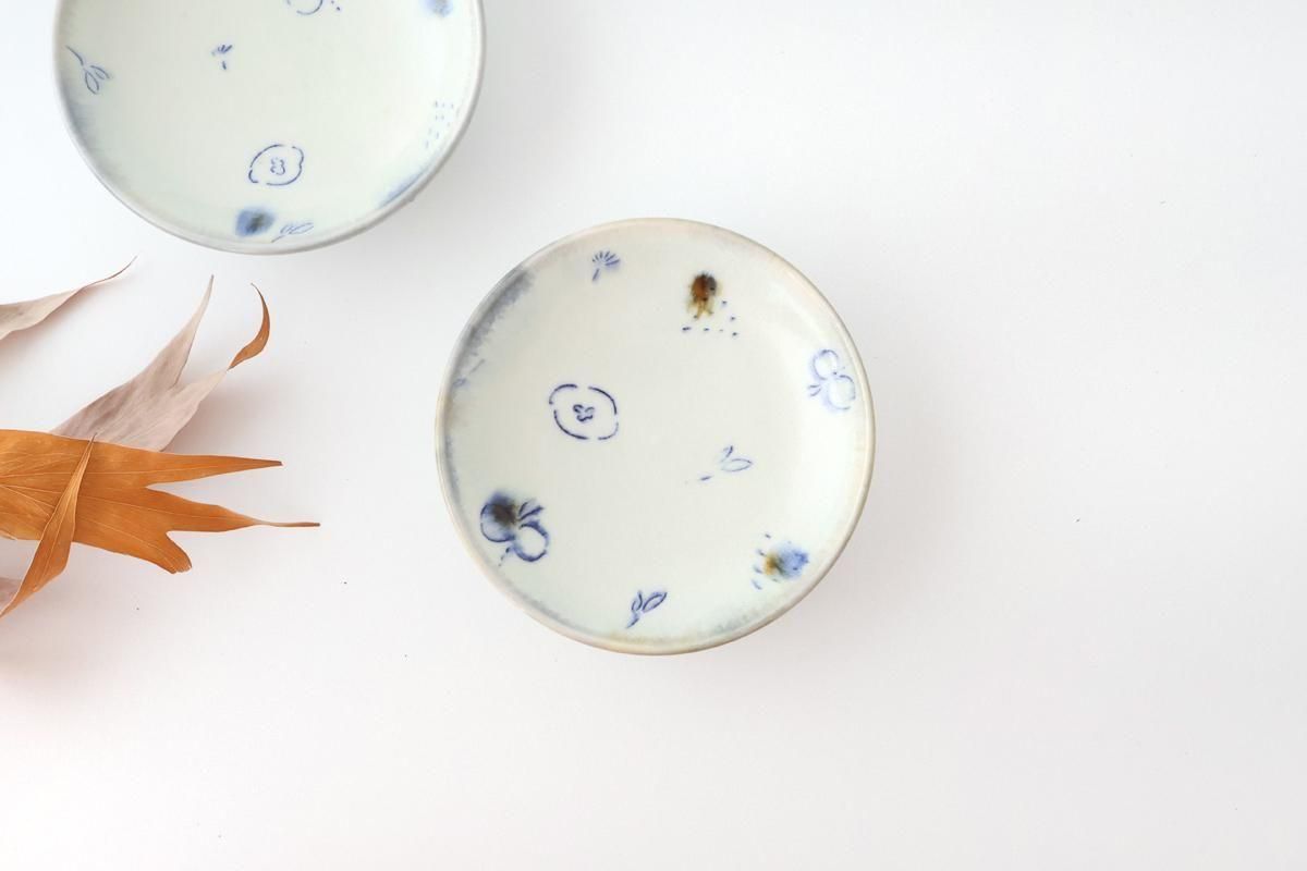柔らかな線で描かれた、可愛らしい絵付けの4寸皿です。