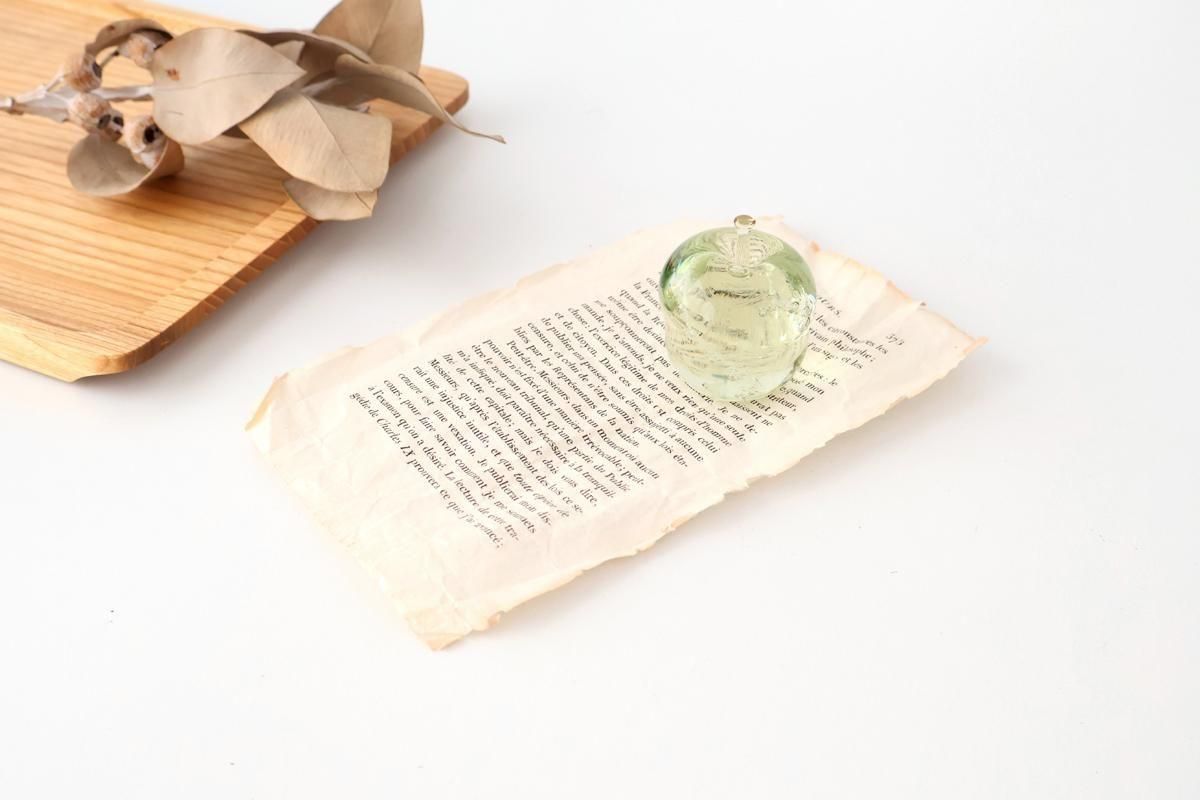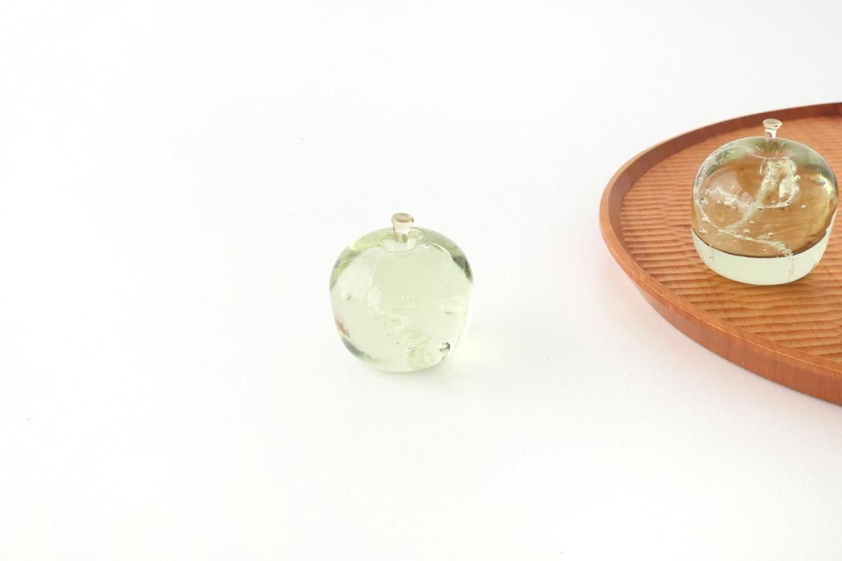 『岩国れんこん』の灰を混ぜて作られるガラスは、なんともいえない柔らかい黄緑色。