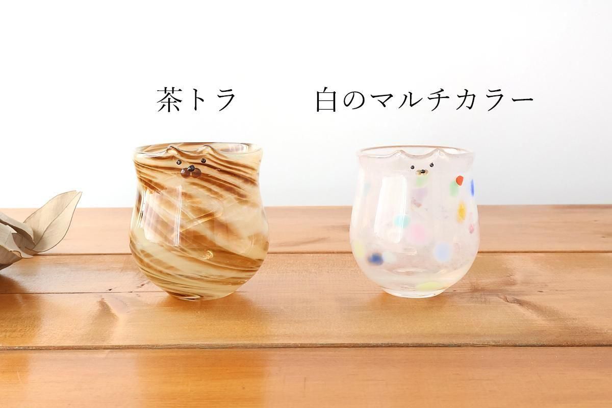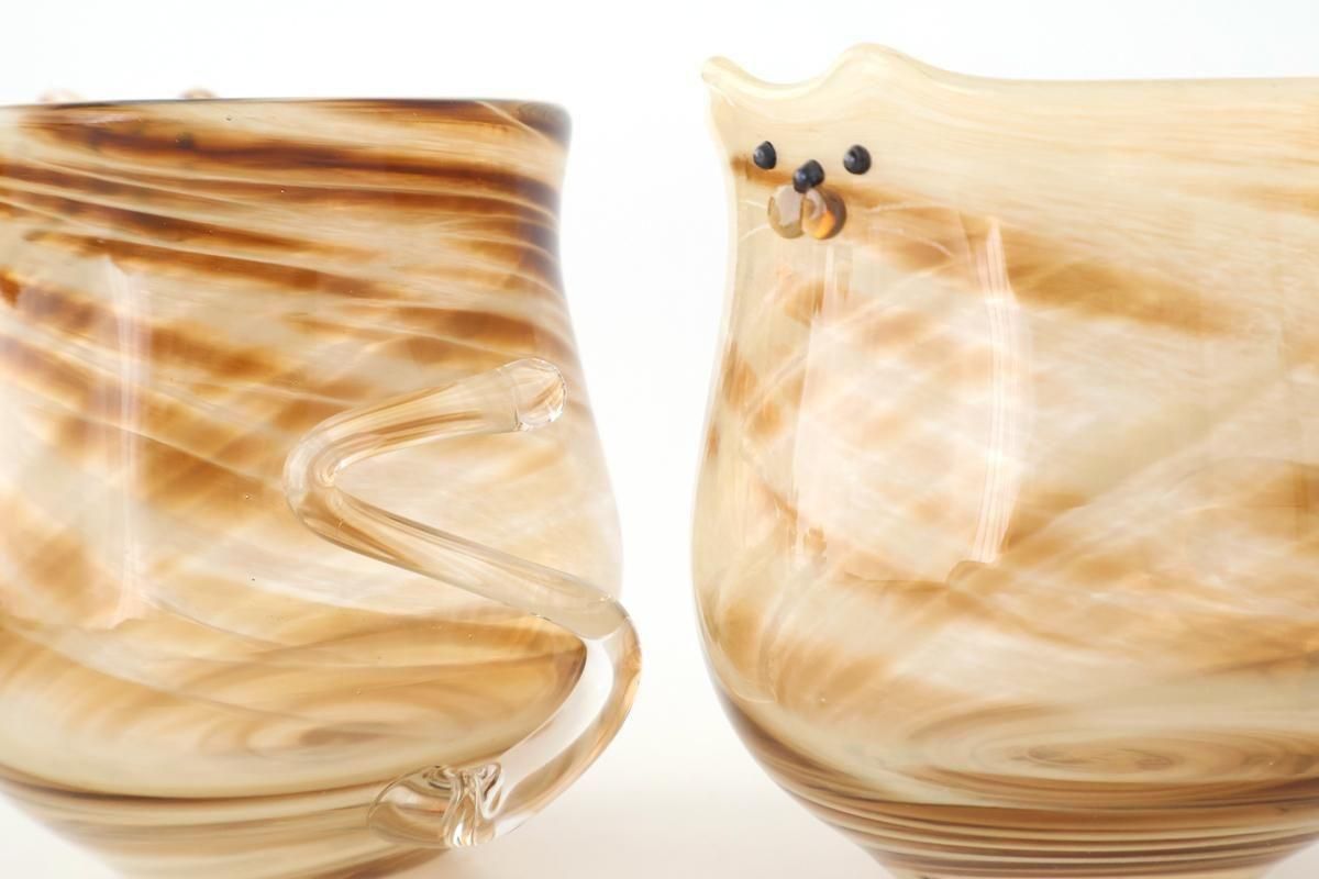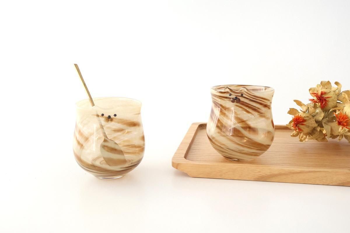 思わずクスッと笑顔になる、猫の顔がついたグラスです。