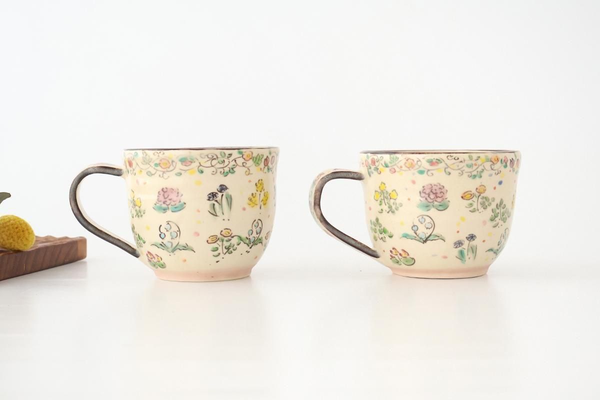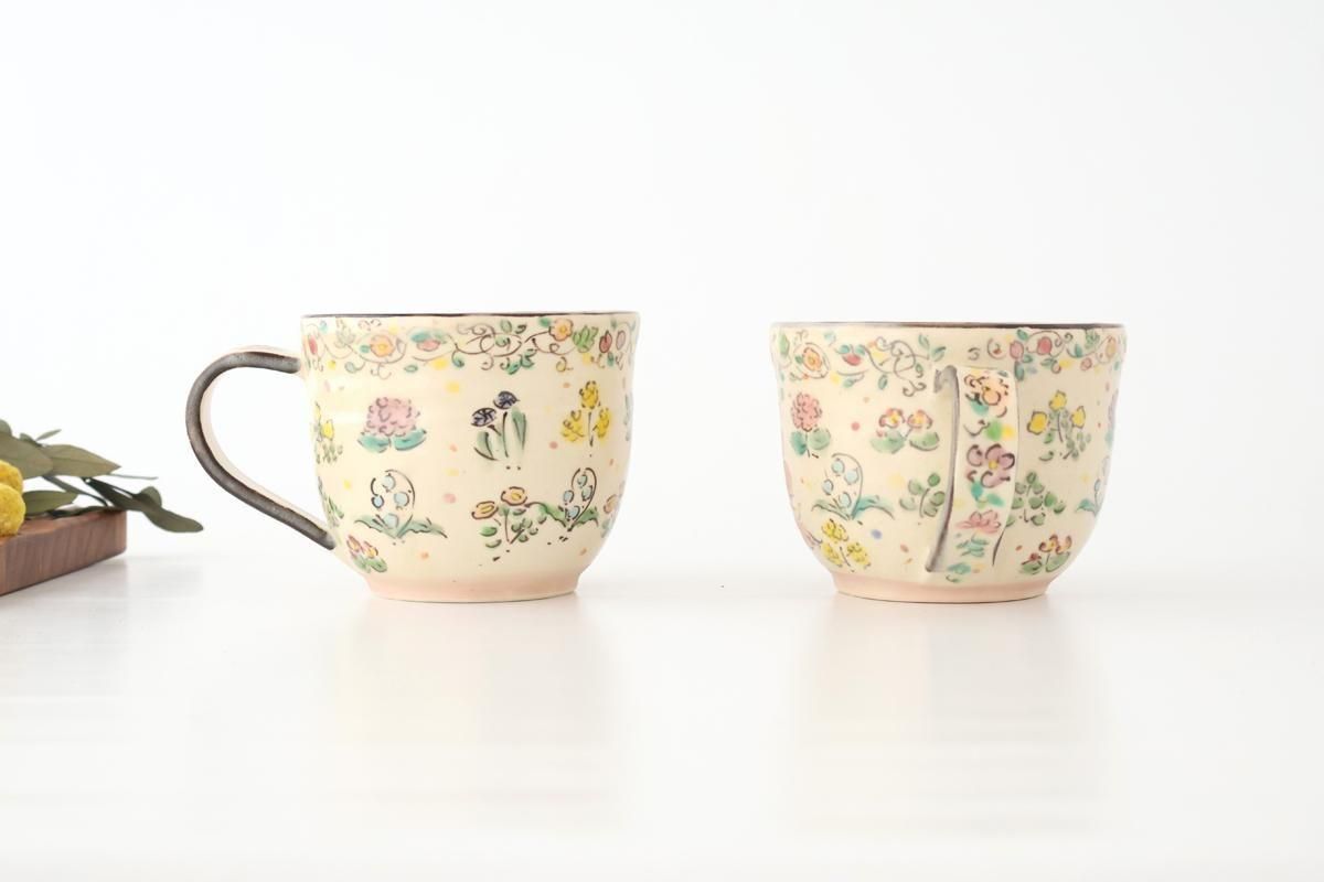 まるでお花畑が広がっているような、華やかな絵付けが魅力的。