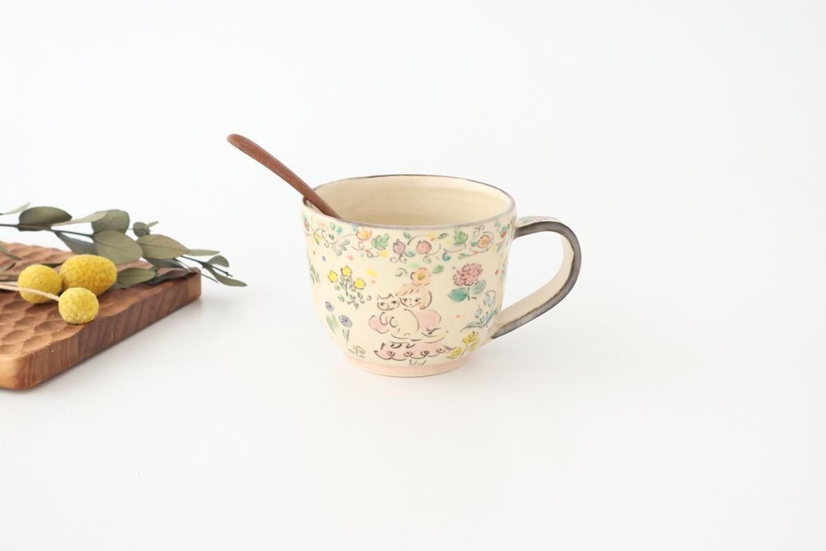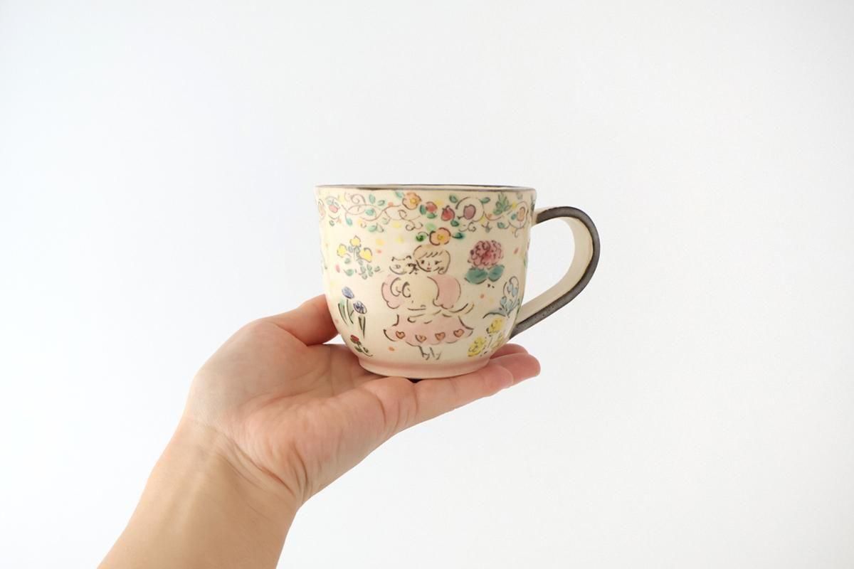 愛らしい表情の女の子と猫がポイントの、コーヒーカップです。