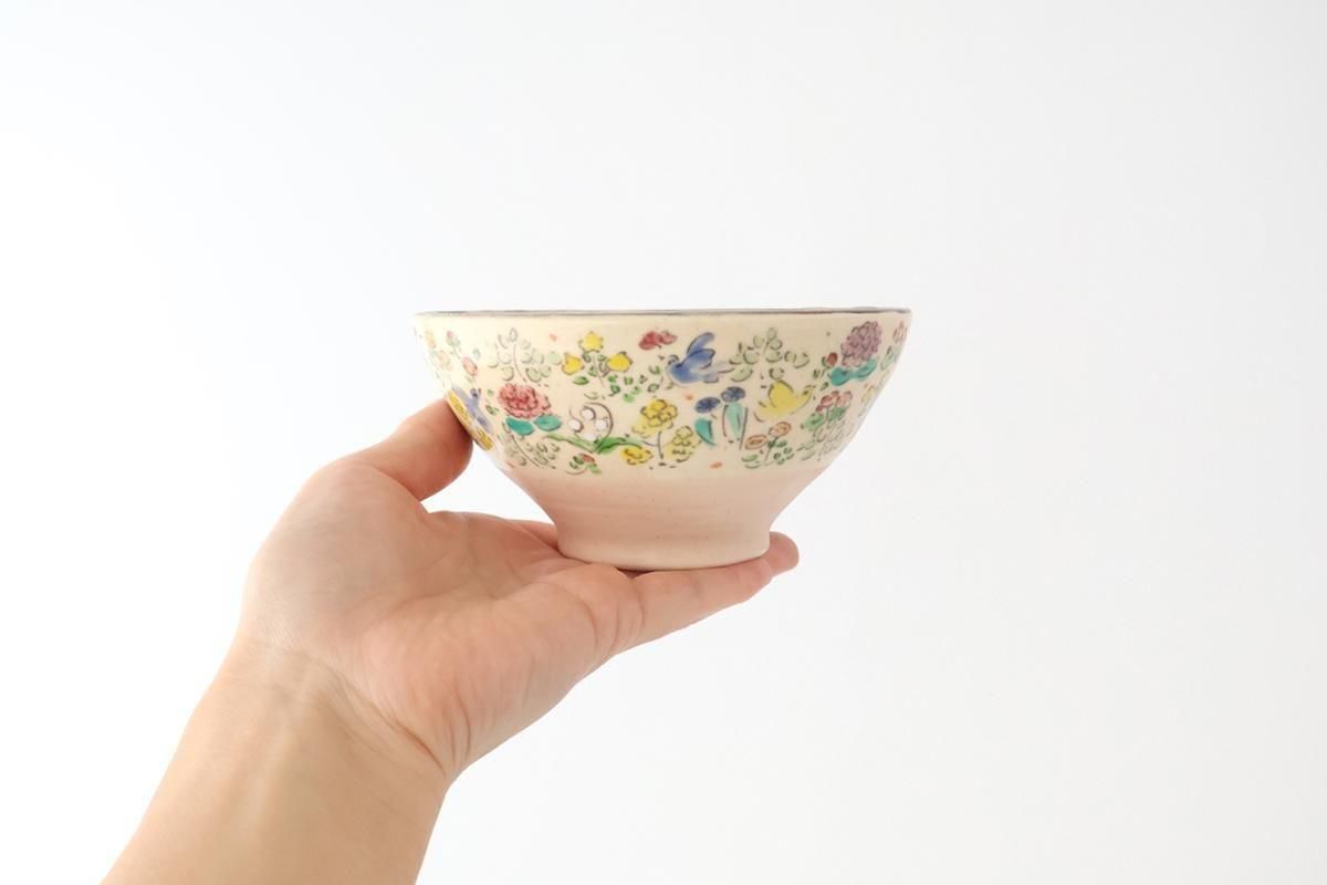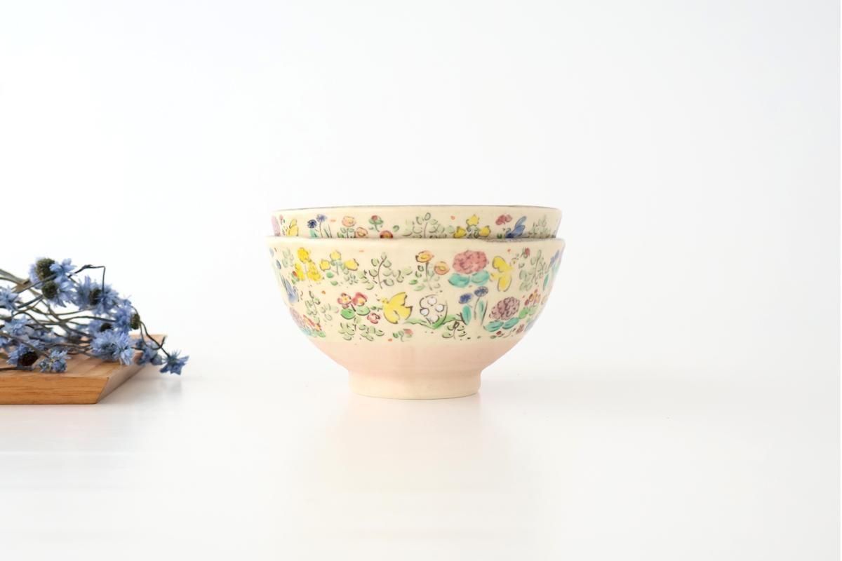 まるでお花畑が広がっているような、華やかな絵付けが魅力的。