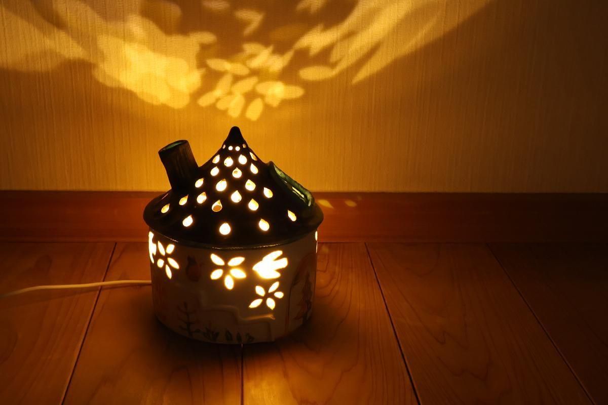部屋の明かりを消して、ランプのスイッチをオン。