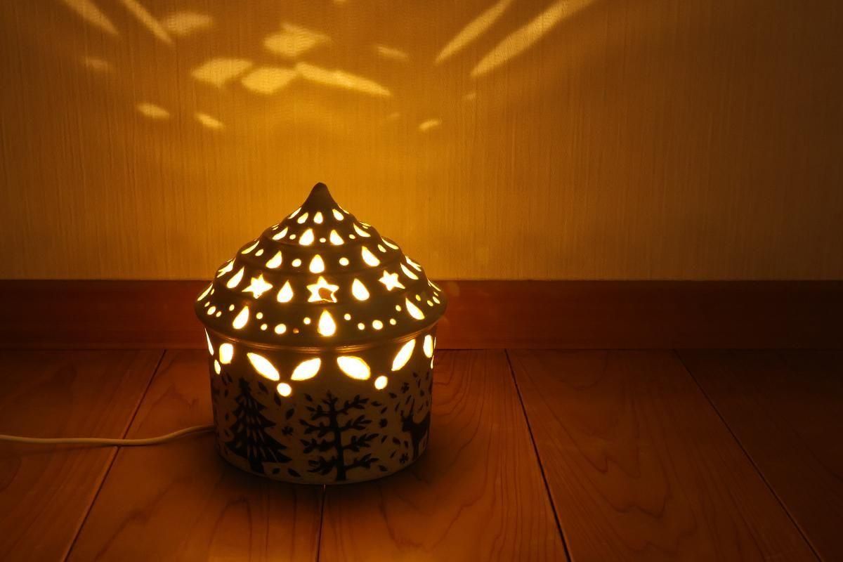 星や木の葉のような小窓から、温かな光が壁や天井にしっかりと映し出されます。
