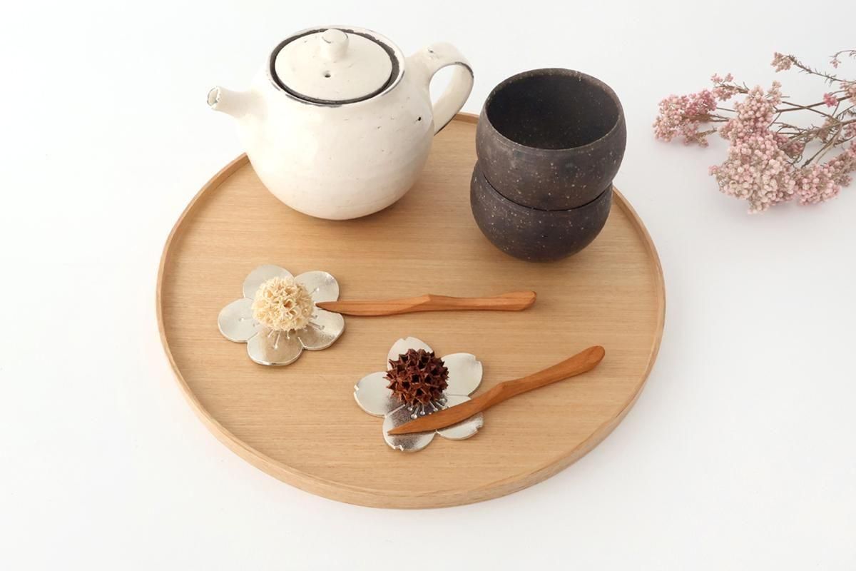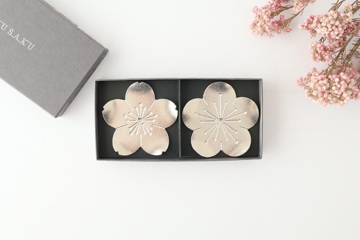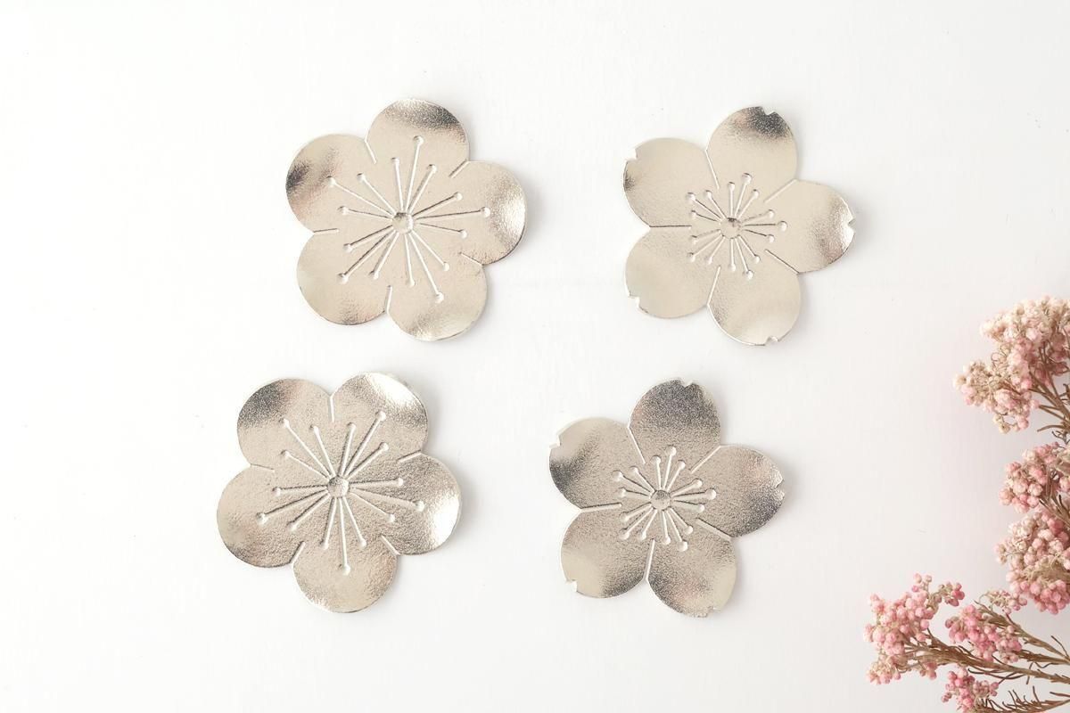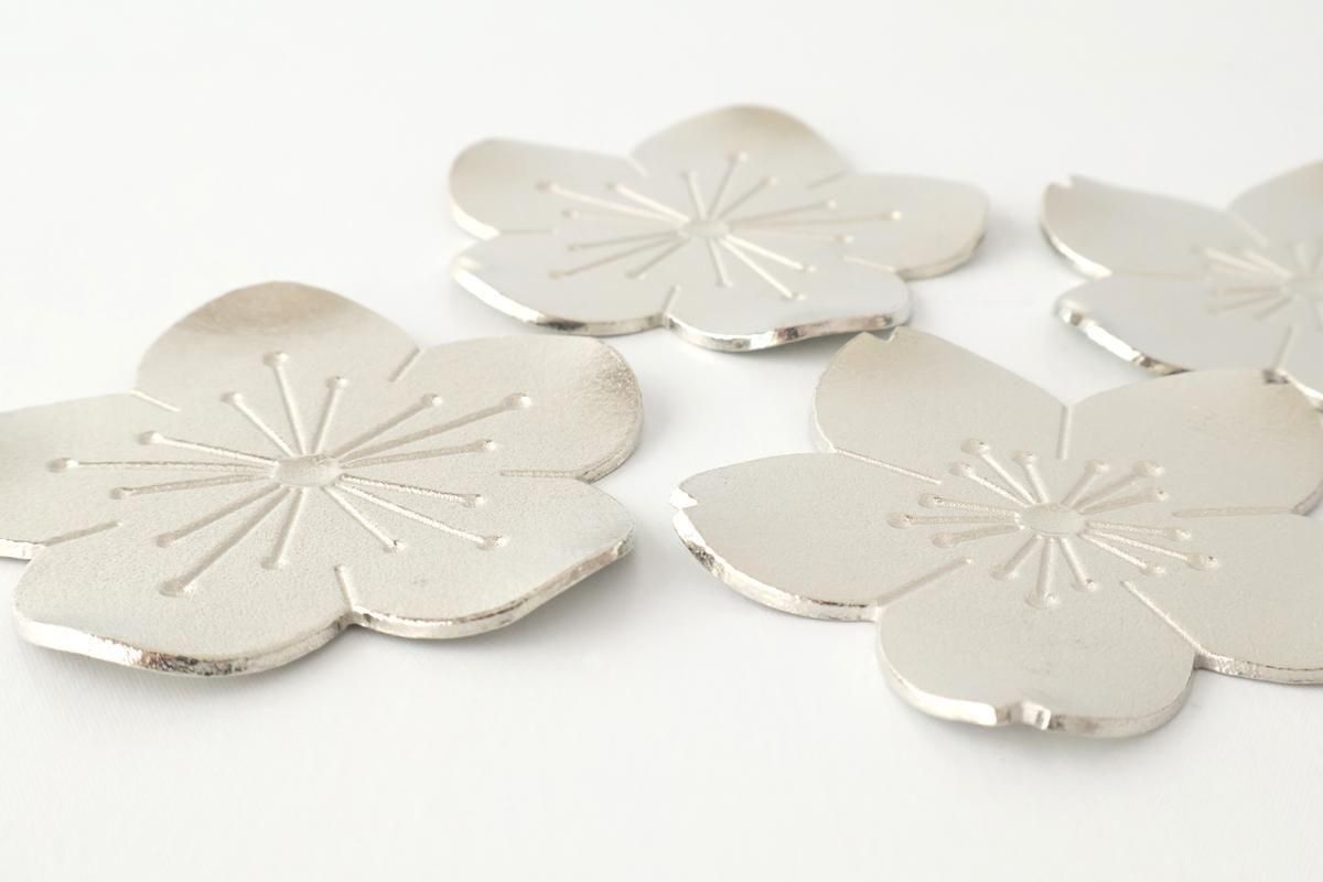 梅・桜の花をモチーフにした、錫(すず)のトレーのセットです。